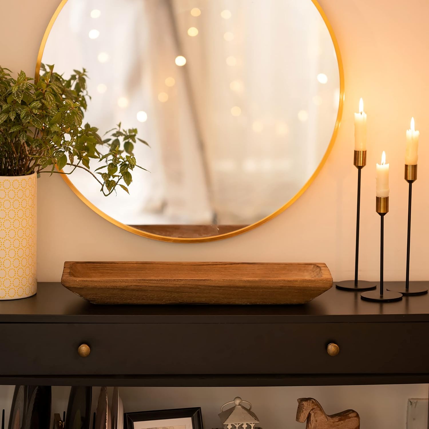 - Grösse: Länge 50cm, Breite 17,5cm und Höhe 6cm. Wie Sie wissen, sind alle unsere hölzernen Schalen für die Dekoration handgefertigt, so kann es Chancen von kleinen Variationen in den Grössen von +/- 1cm sein. Diese flachen Kerzenhalter für