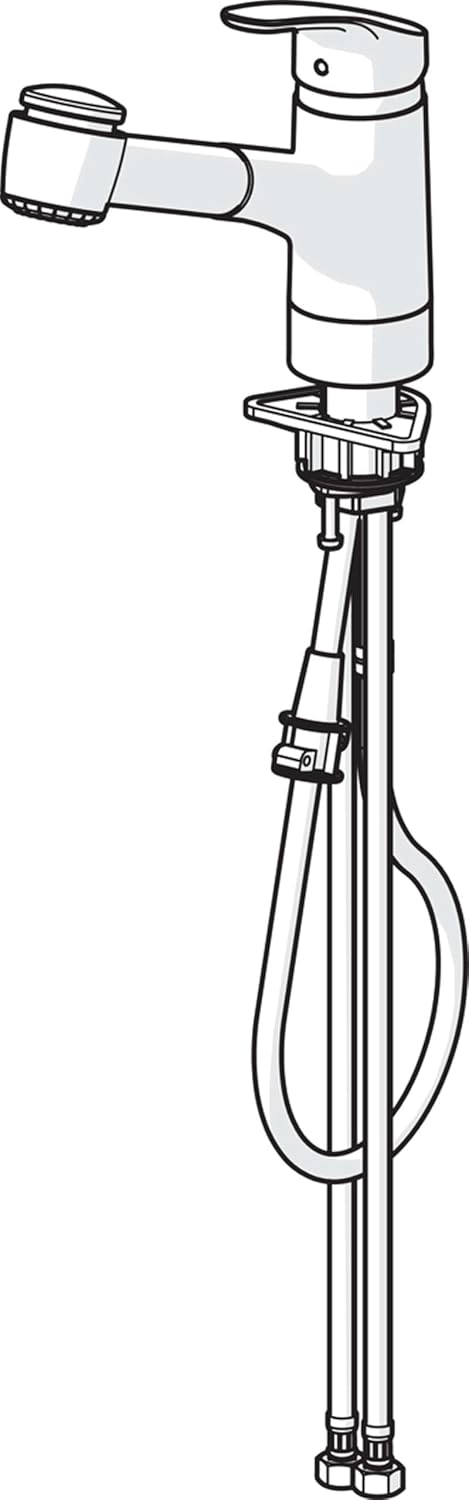 - Montage für Arbeitsplatten bis 45 mm; eigensicher gegen Rückfliessen im häuslichen Gebrauch; Anschluss über flexible Druckschläuche G 3/8