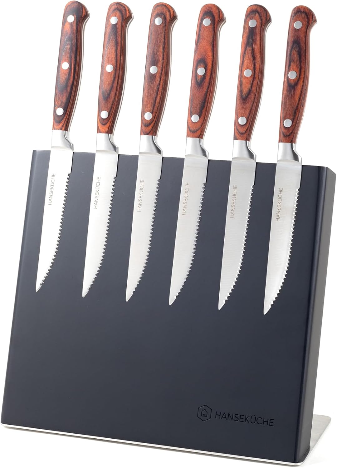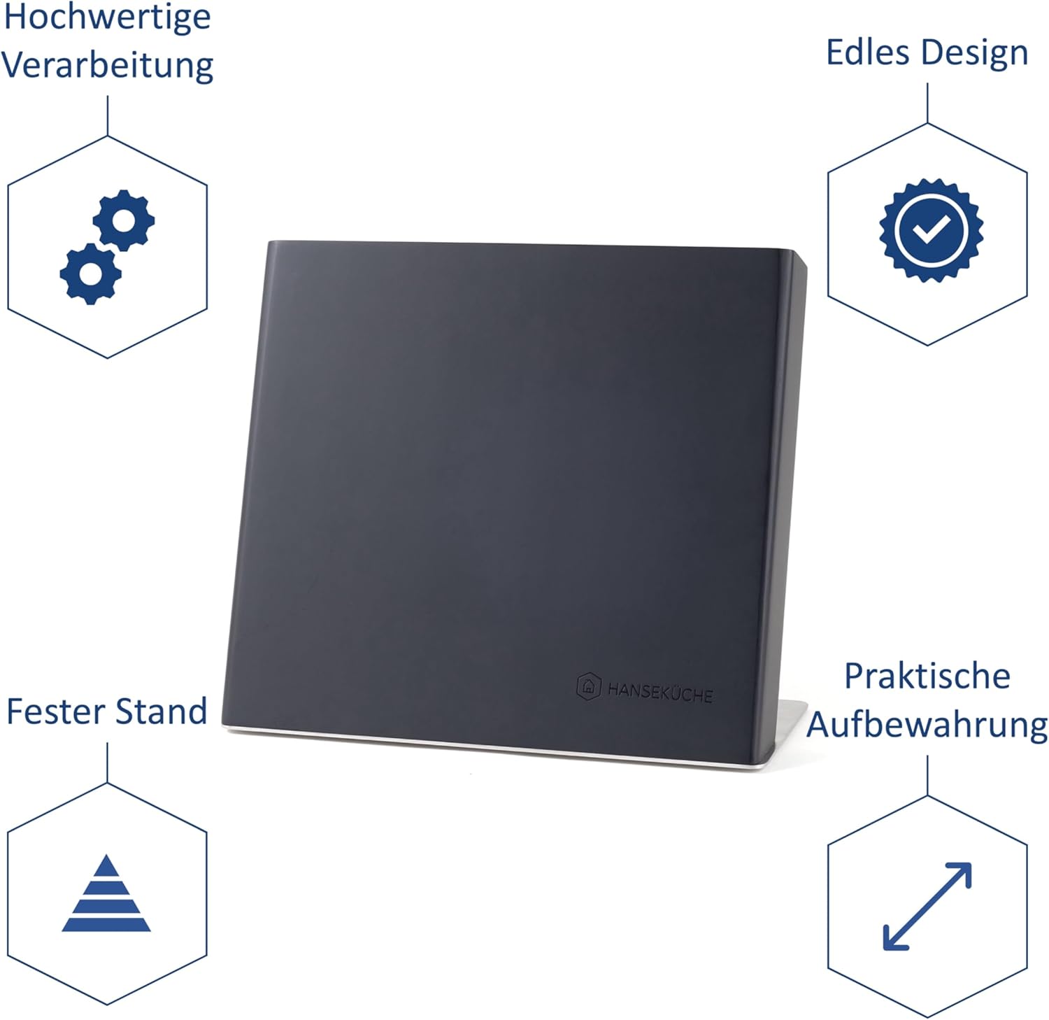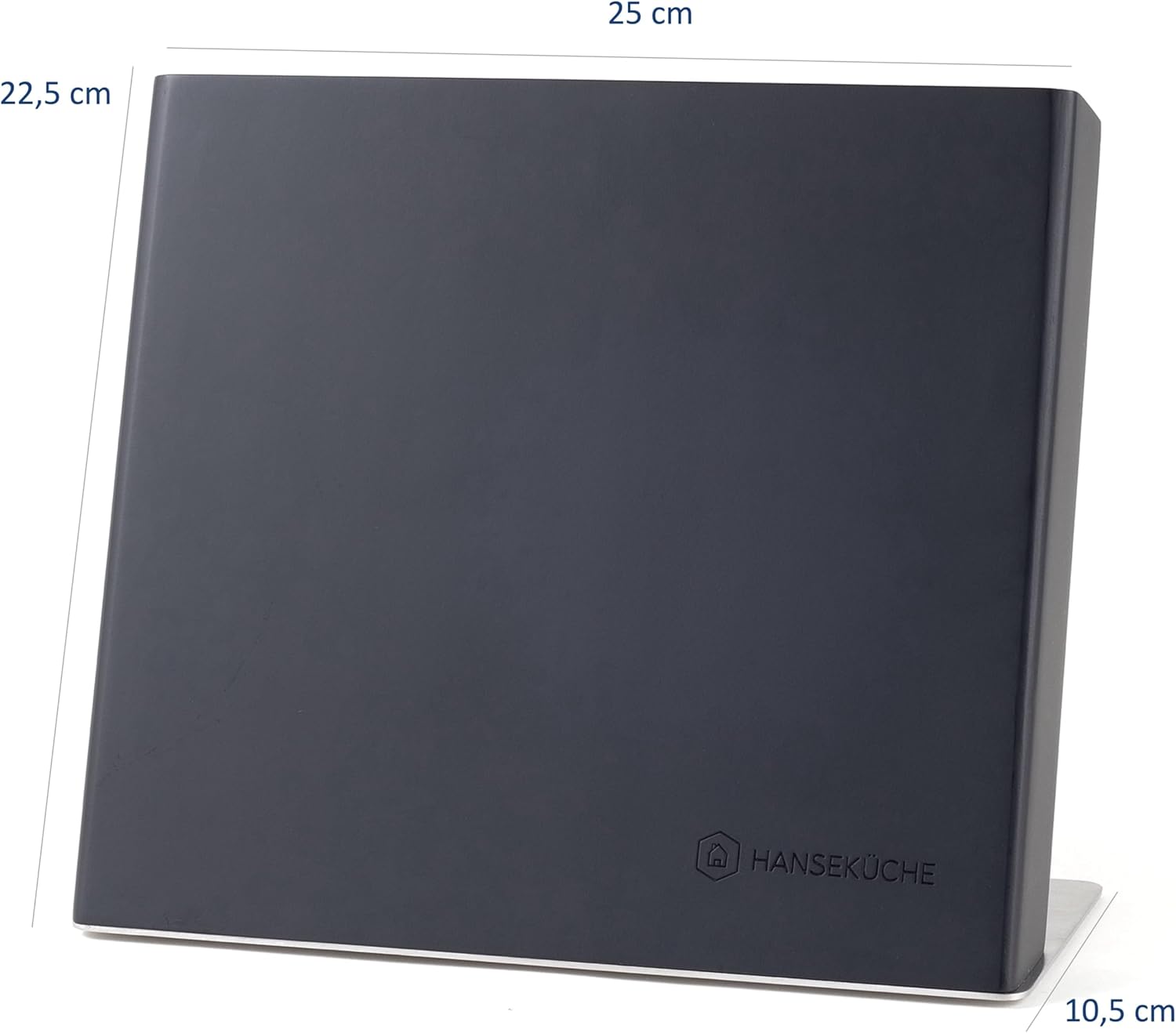 - ✅ FESTER STAND UND HALT – Der Hanseküche Messerhalter zeichnet sich durch seine robuste Verarbeitung aus. Der tiefe Edelstahl Standfuss und die Gummifüsse garantieren einen guten Stand. Darüber hinaus sorgt der Magnet für den Halt der Messer.