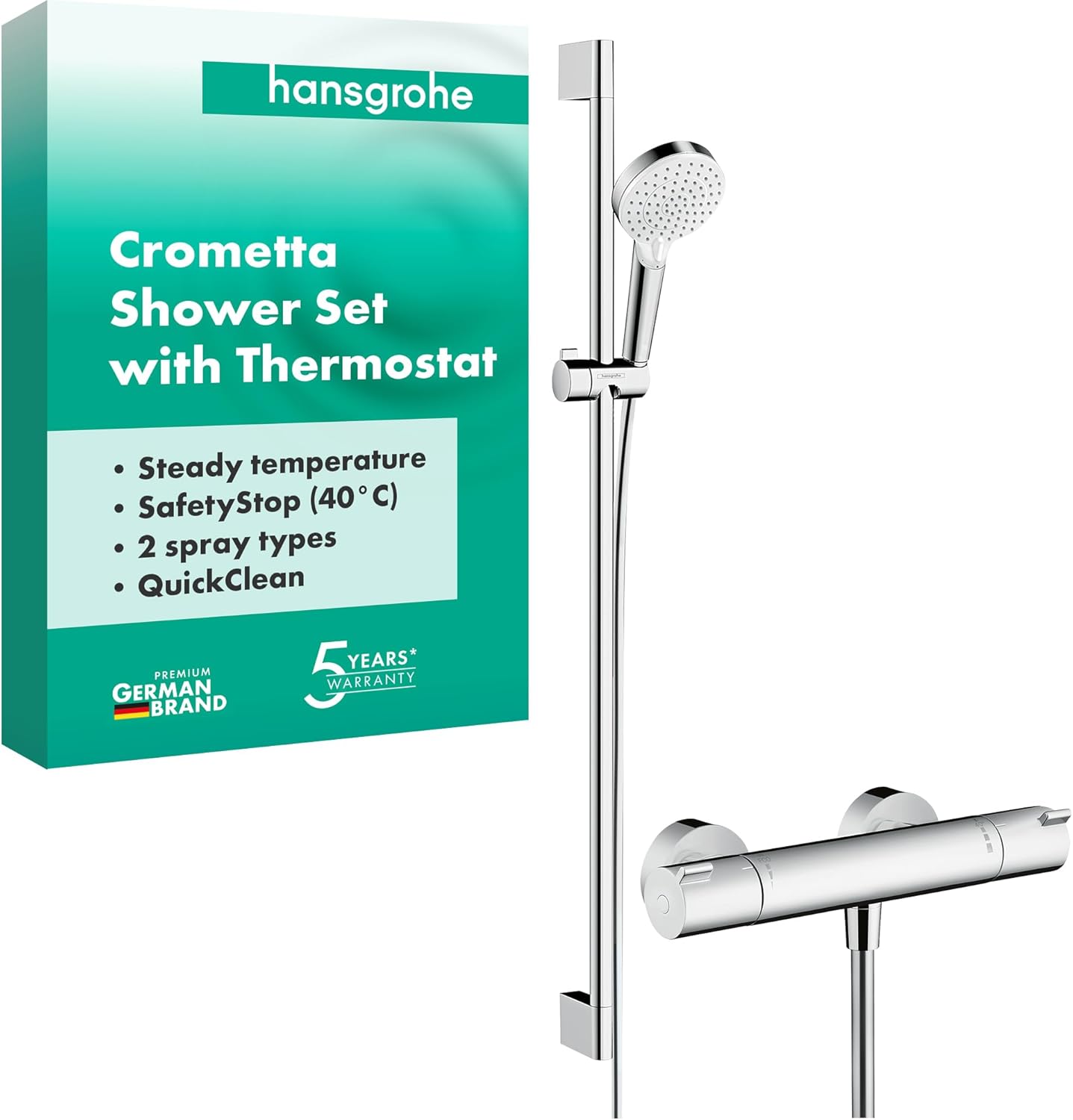 hansgrohe Crometta Theromstatset 0,90m, 2 Strahlarten, Weiss/Chrom Weiss/Chrom Duschset / Duschkopf