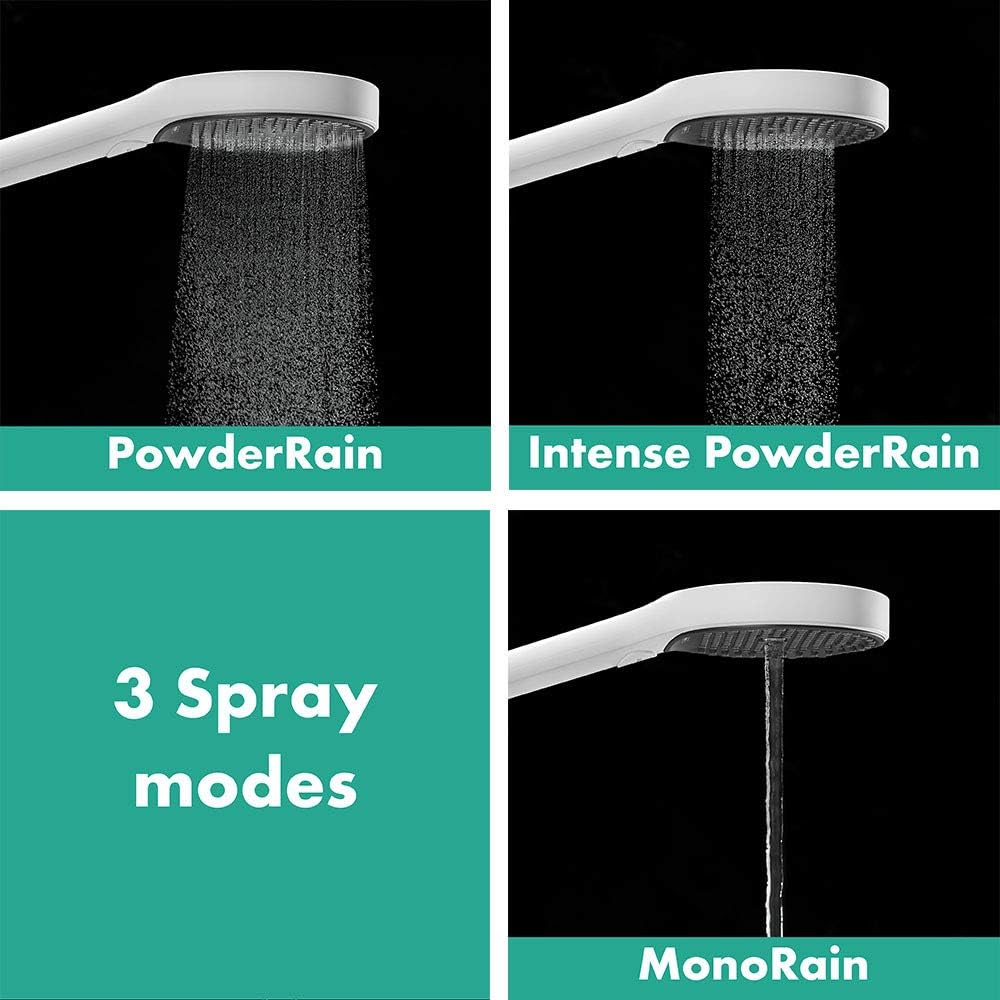 - 3 in 1: PowderRain schafft einen Kokon aus Wasser. Intense PowderRain ist ein intensiver Strahl aus mikrofeinen Tropfen für effektvolles Duschen. Mono Rain bietet wohltuende Wellness-Momente