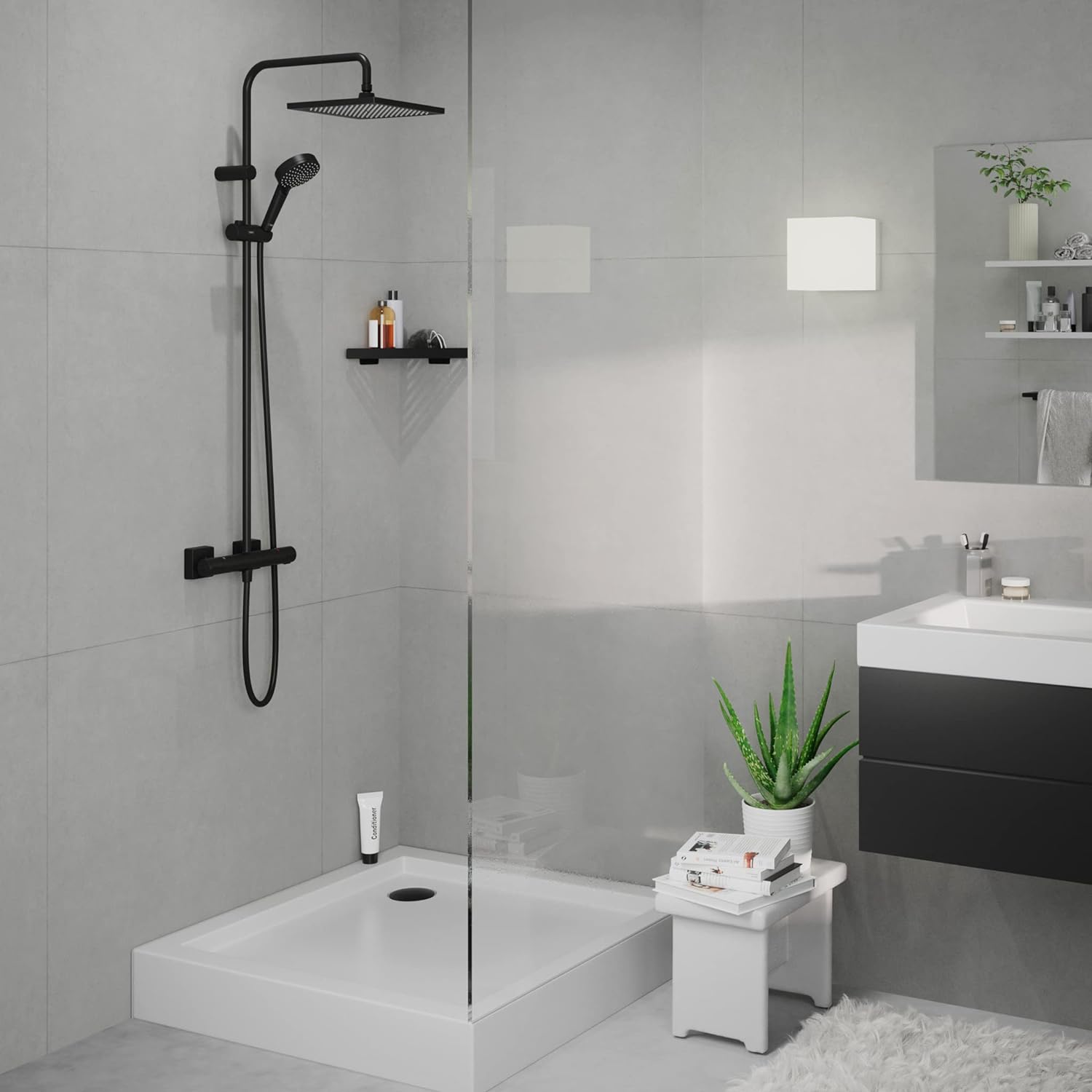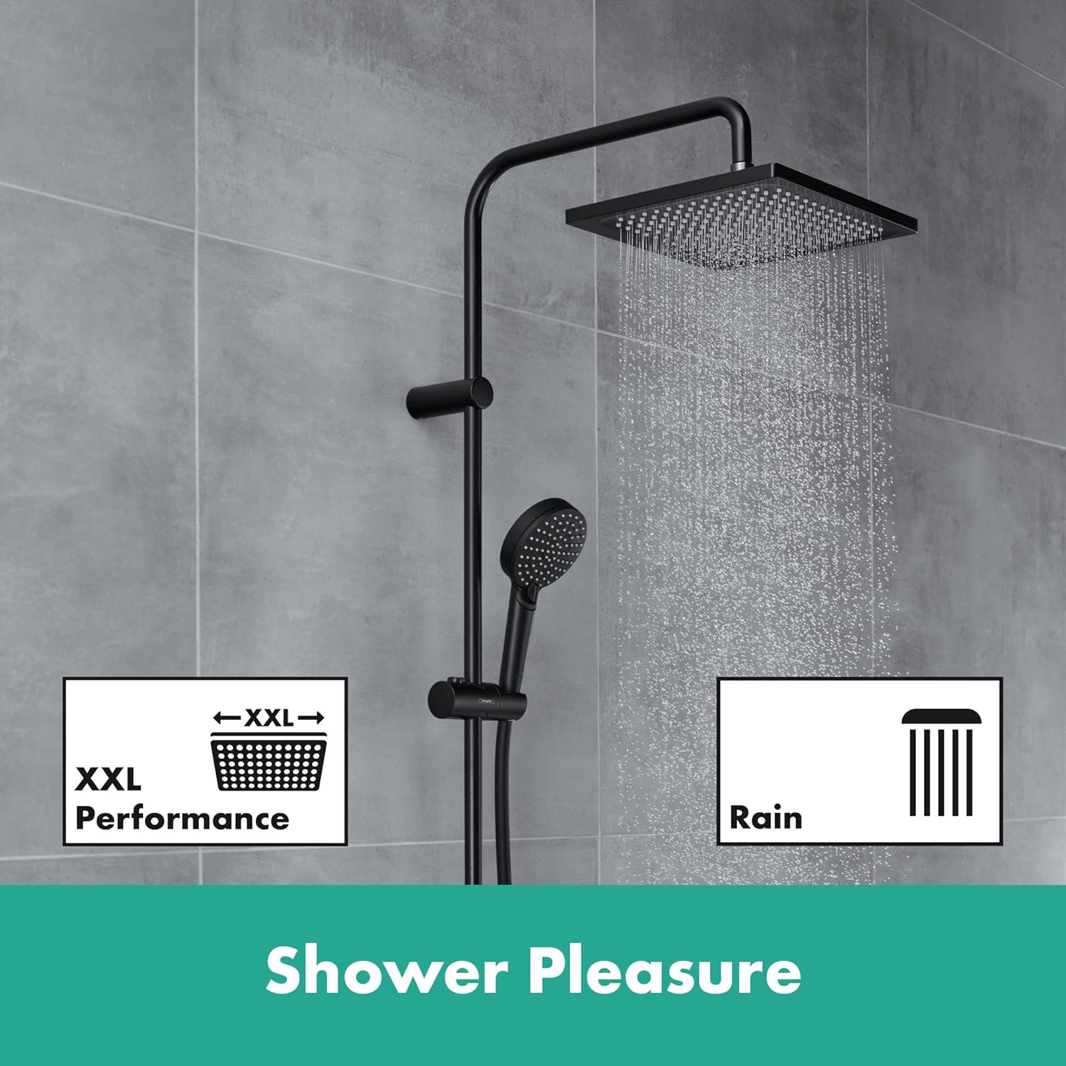 • Starkes Design fürs kleine Budget: das geometrisch gestaltete Vernis Shape Duschsystem bringt Komfort und Wasserspass ins Bad