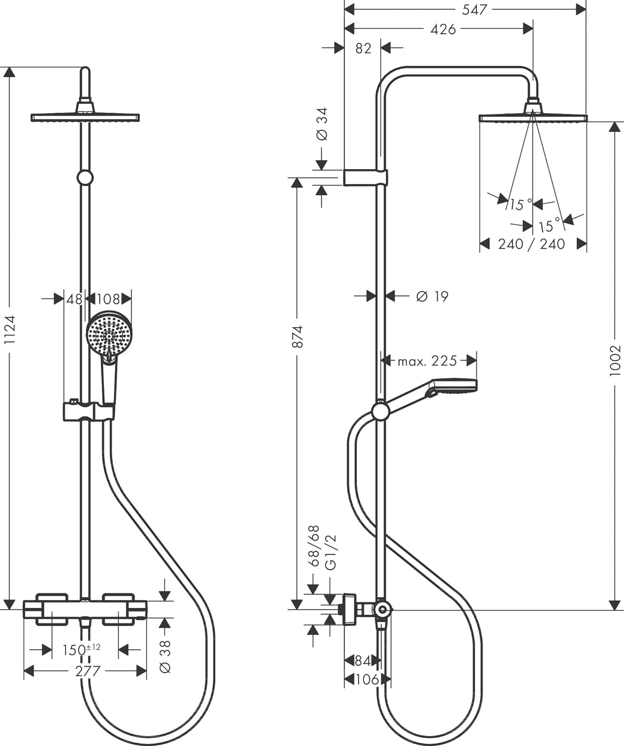hansgrohe Duschsystem Vernis Shape, Brausekopfgrösse 240 x 240 mm, Duschset mit Thermostat, Duschkop