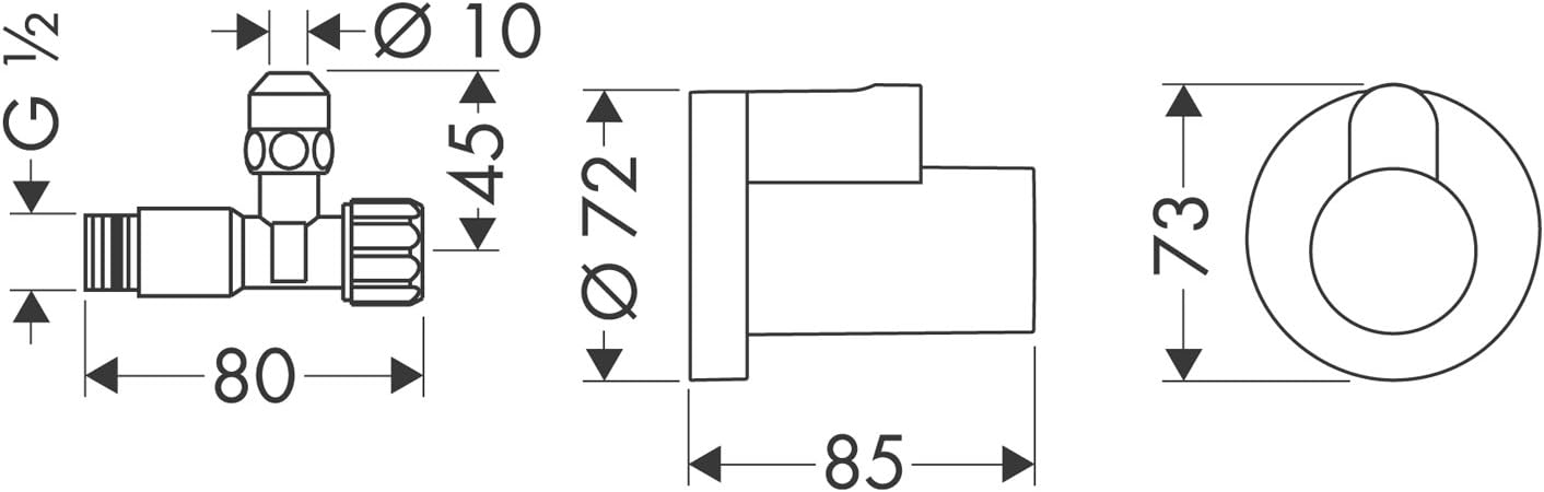 • Eckventil bestehend aus: Eckventil Grundkörper, Eckventil Abdeckung, Quetschverschraubung Ø 10 mm, inkl. selbstdichtendem Anschlussgewinde