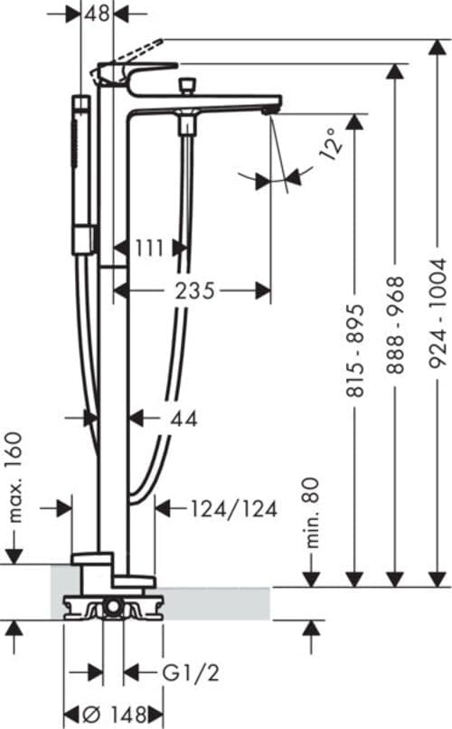 - Schnelles Befüllen der Wanne: Durchflussmenge der Handbrause/des Wanneneinlaufs (bei 3 bar): 14,5/20,5 l/min