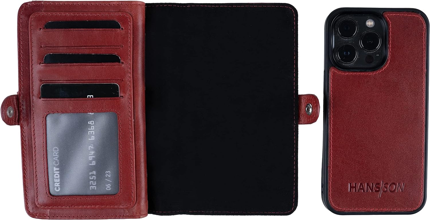- ECHTLEDER: Die Hans/Son iPhone 12 Pro Max Handyhülle aus echtem Leder mit Brieftasche und herausnehmbarer Handy-Hülle (magnetisch) ist mit vielen Kartenfächern, Scheinfach und Münzfach bestens ausgestattet und als Ersatz der Geldbörse geeignet. Alle