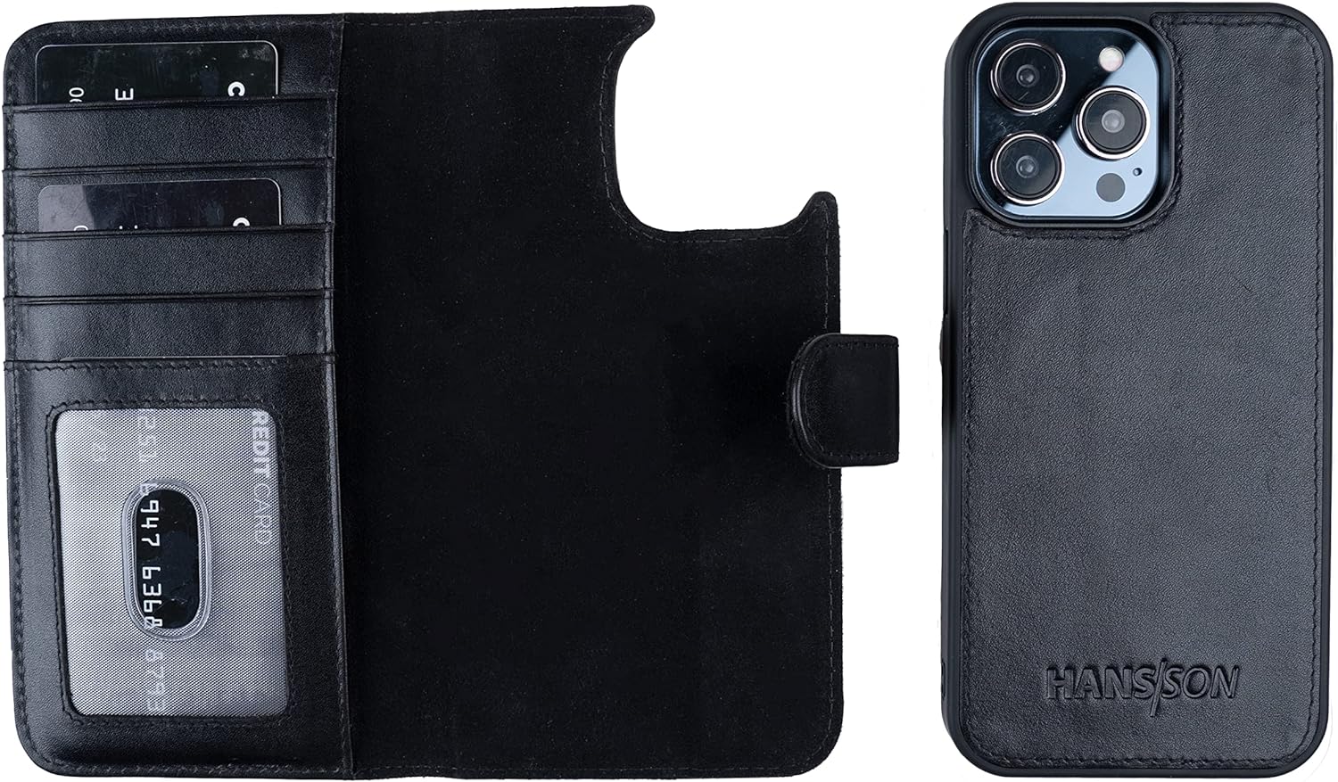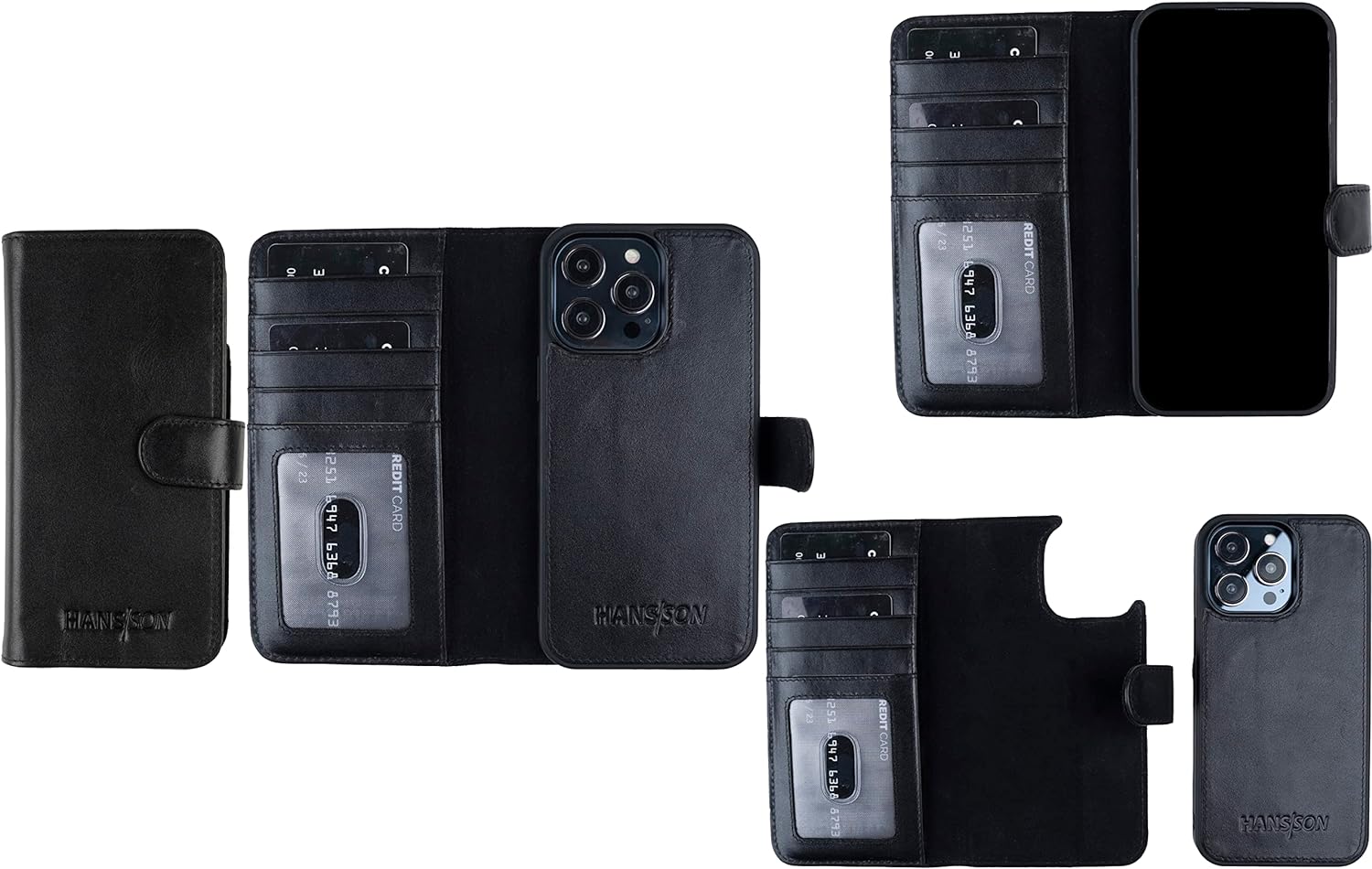 HANS/SON Handyhülle kompatibel mit iPhone 14 pro | Flip Case Echt-Leder | Magsafe Klapphülle mit Kar