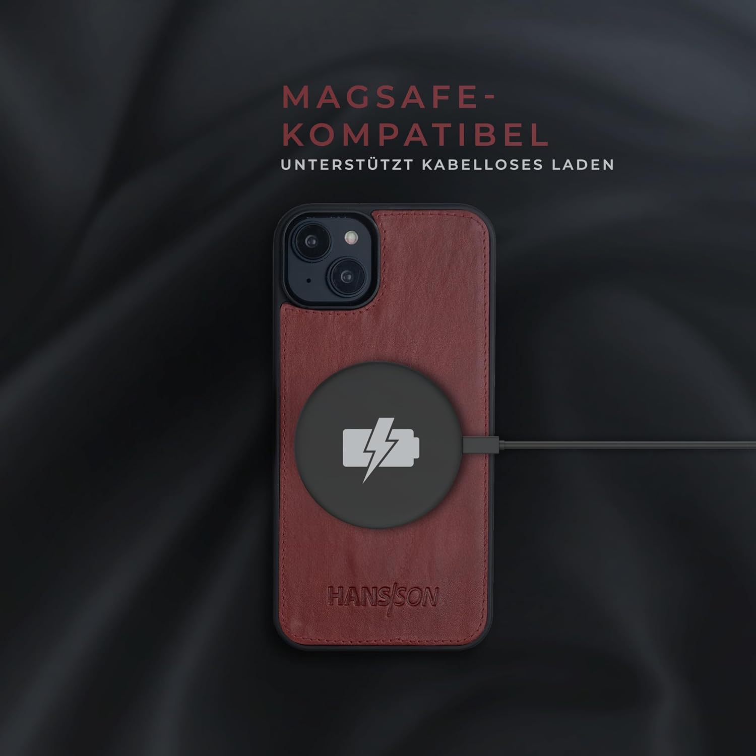 HANS/SON Lederhülle mit Kartenfächern | iPhone 14 | Echtleder | 6,1 Zoll | Schmal | Klapphülle | Sto