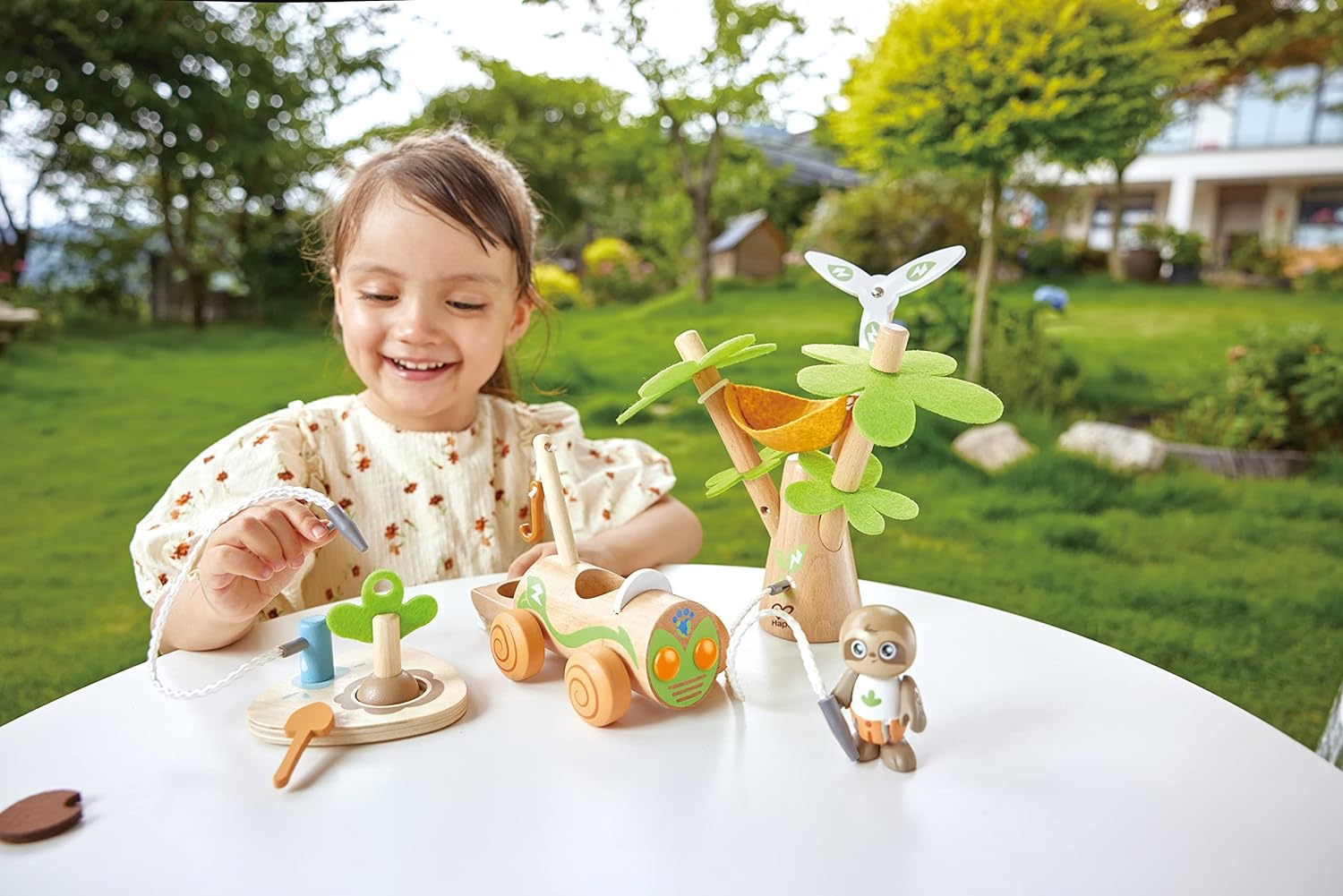 - Enthält einen Baum mit Hängematte und rotierendem Windrad, ein "elektrisches" Auto mit sich drehenden Rädern, das Bäume pflanzen kann, einen kleinen Baum zum Pflanzen, einen Pflanzbereich, eine Schaufel und eine Faultierkind-Figur