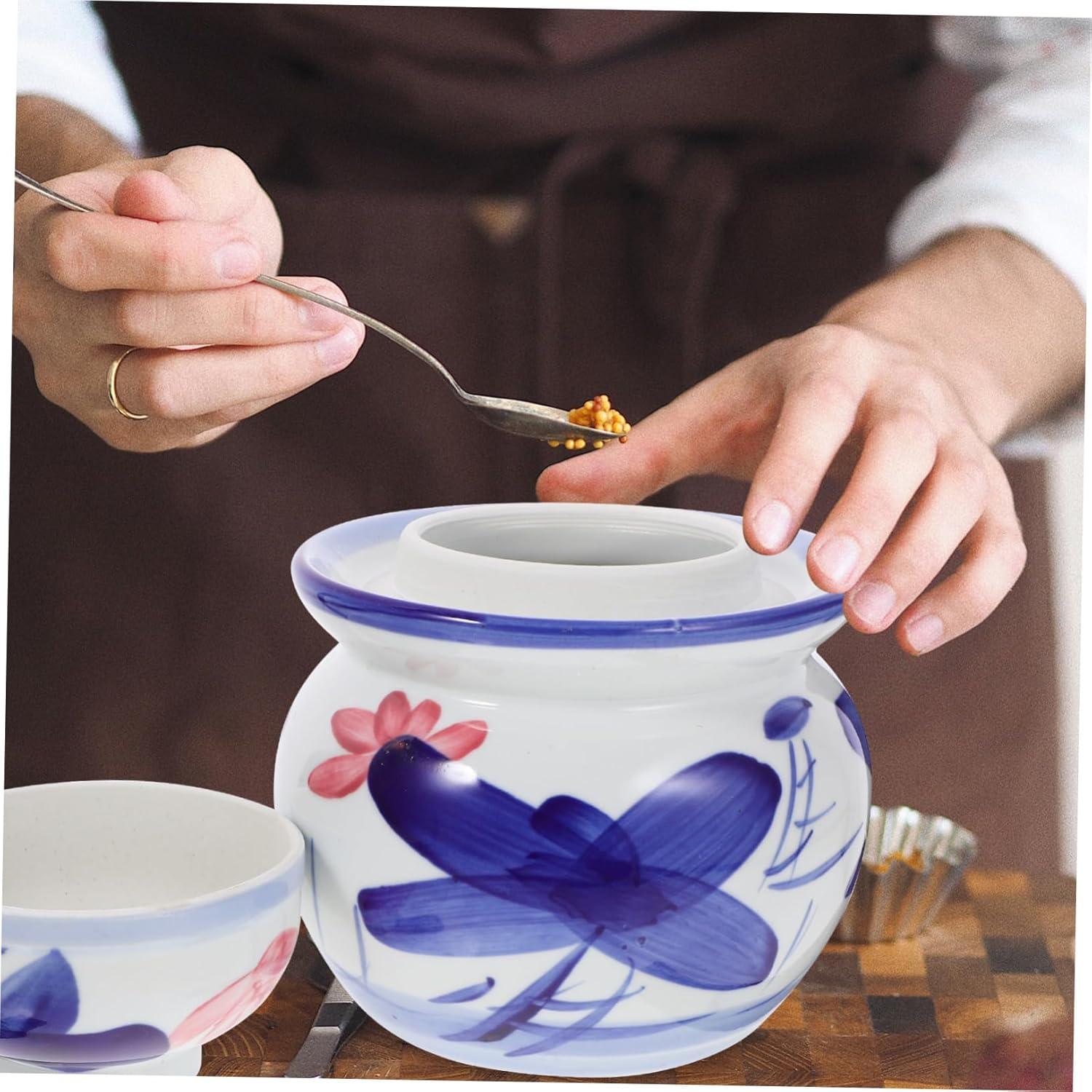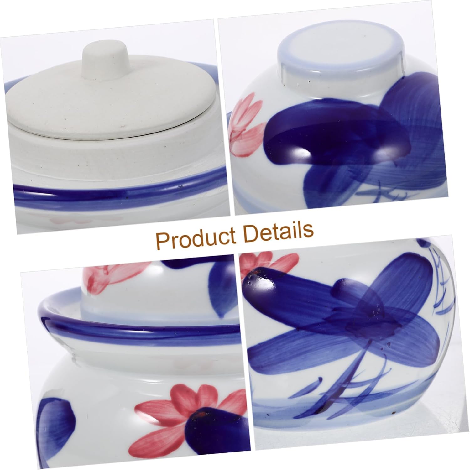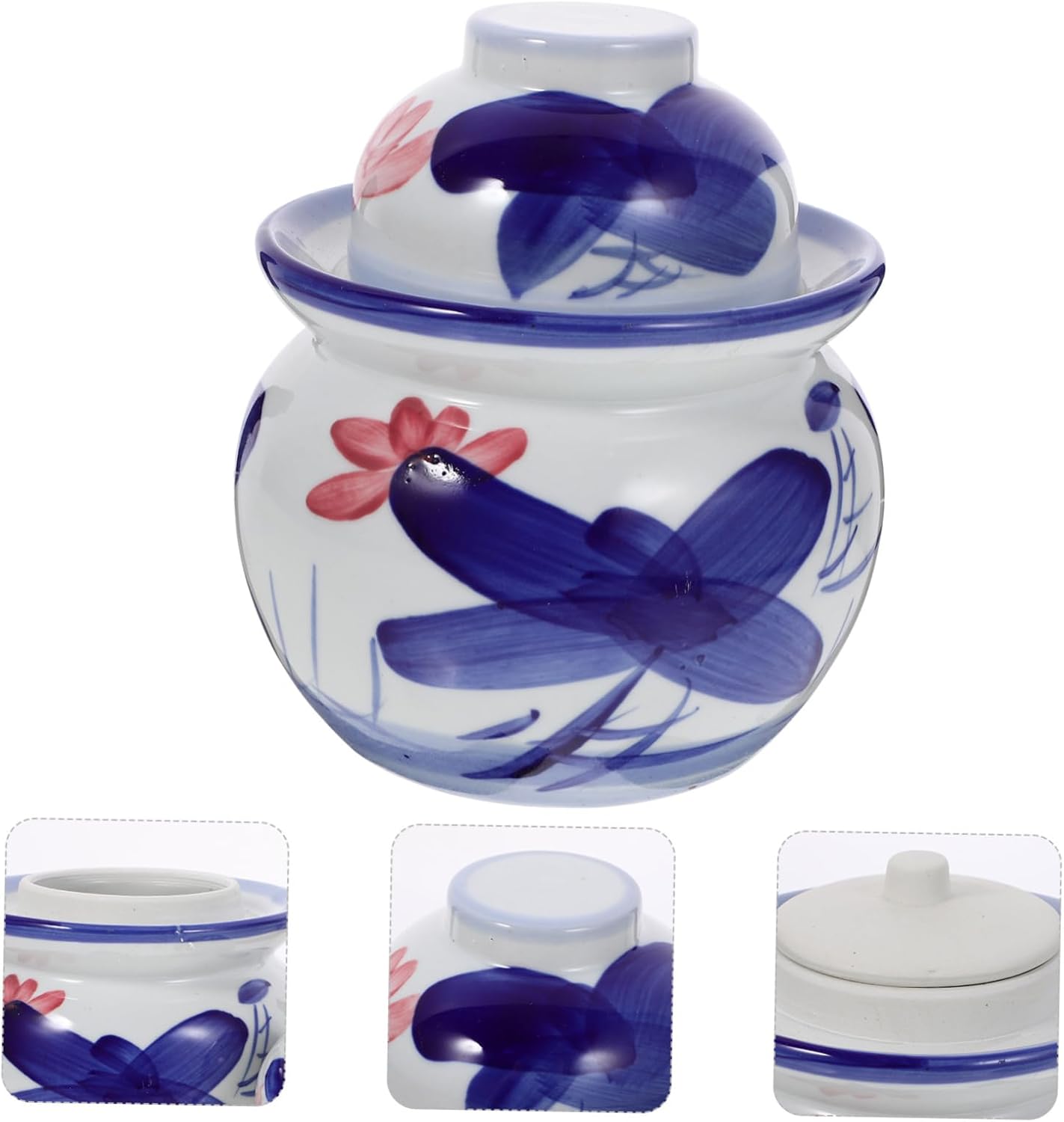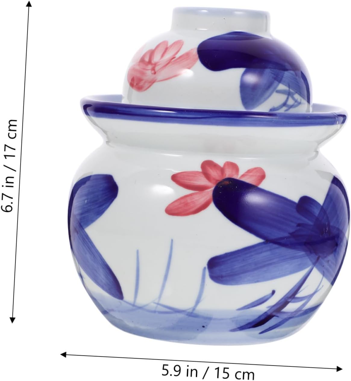 • Porzellan- P?kelglas mit Deckel, Lotus- G?rung, Kimchi- Topf, Lebensmittelaufbewahrung, Sauerkrautbeh?lter mit gro?em Fassungsverm? traditionellem chinesischem Musterdesign sch?n exquisit.