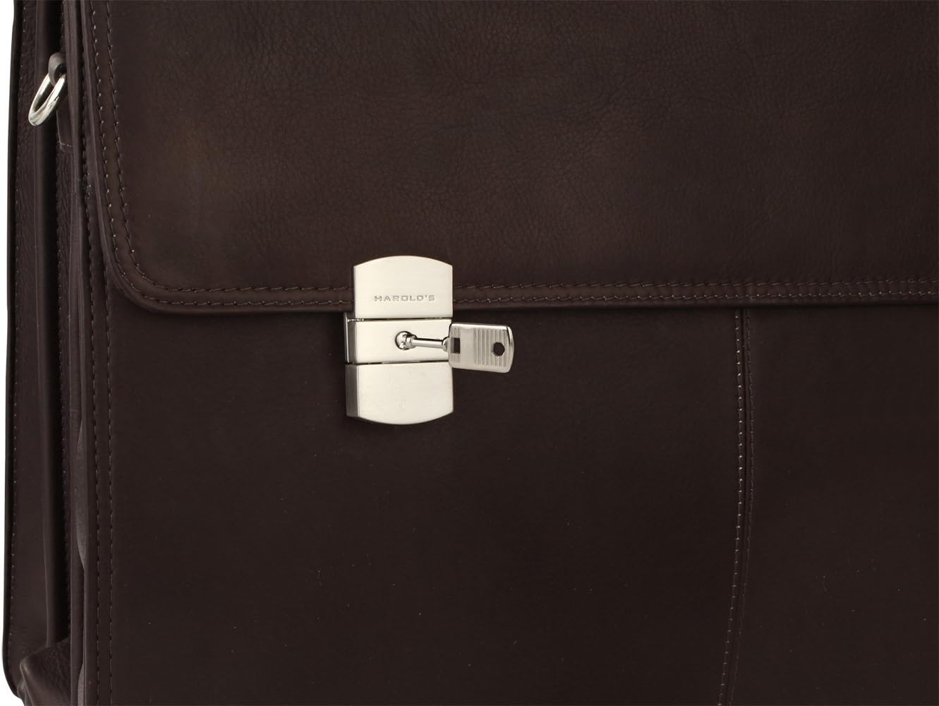 PRODUKTBESCHREIBUNGEN   Harolds Country Aktentasche Notebookmappe 17 Zoll Echtes unbehandeltes Naturmaterial. Durch schonende Gerbung und behutsamen Farbauftrag bleibt die natürliche Optik erhalten. Die gefettete Oberfläche hat einen satten und samtartigen Griff. Die Taschen sind nach bestem handwerklichen Know-how gefertigt und mit einem reissfesten Lining ausgestattet. Aussenausstattung: 1 Tragegriff abnehmbarer Schultergurt Überschlag mit 2 Steckschlösser, abschliessbar Reissverschluss-Fach an Rückseite oder nutzbar als Aufsteckmöglichkeit für Trolleygestänge durch 2. Reissverschluss unten am Fach Innenausstattung: Hauptfach geteilt in 3 Fächer 1 Reissverschluss-Mittelfach gepolstertes Laptopfach passend für Laptops bis 17 Zoll 3 Seiten-Steckfächer Organizer mit Handyfach 4 Kartenfächer und 2 Stiftfächer ZollMade in Kolumbien Zoll Dieser Artikel ist aus dem Katalog ZollStandard Zoll von Harolds. Hier das PDF als Download.