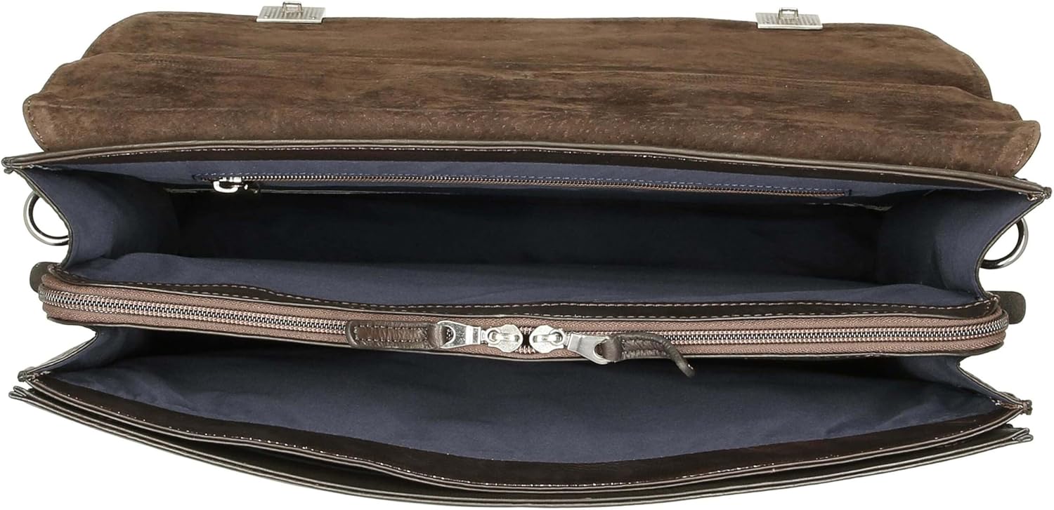 PRODUKTBESCHREIBUNGEN Durch die schonende, vegetabile Gerbung des Notebook Briefcases L a us der Country Kollektion und dem behutsamen Farbauftrag bleiben die natürlichen Strukturen des Materials erhalten. Das Leder erhält mit der Zeit eine dezente Patina. Durch den abnehmbaren, längenverstellbaren Trageriemen können Sie die Tasche individuell in der Hand tragen oder schräg umhängen. Verarbeitet und hergestellt wurde die Kollektion in Kolumbien. - 1 Vortasche - 1 Notebookfach - 2 Hauptfächer f.gr. Ordner - 1 RV-Rückfack