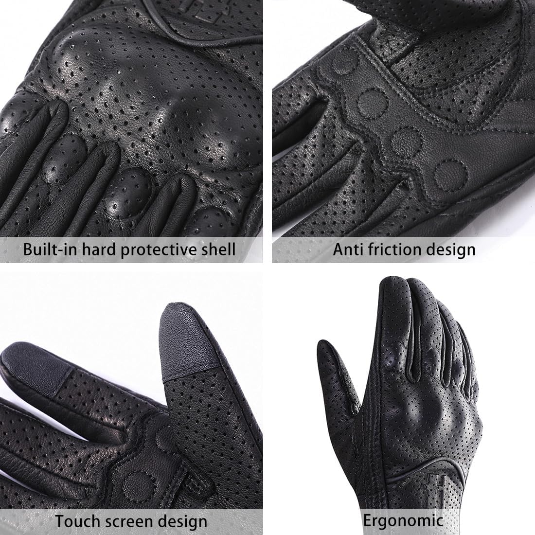 - Harssidanzar Herren Motorradhandschuhe Ziegenleder Vollfinger Atmungsaktives und Perforiertes Design Touchscreen Sommer Motorradhandschuhe CM043EUA, C3-Schwarz, Grösse XS