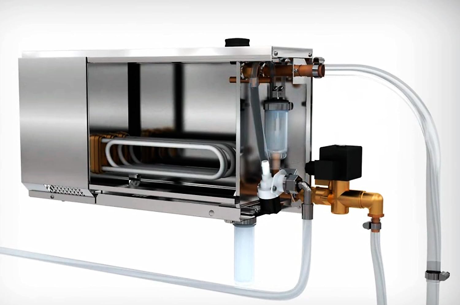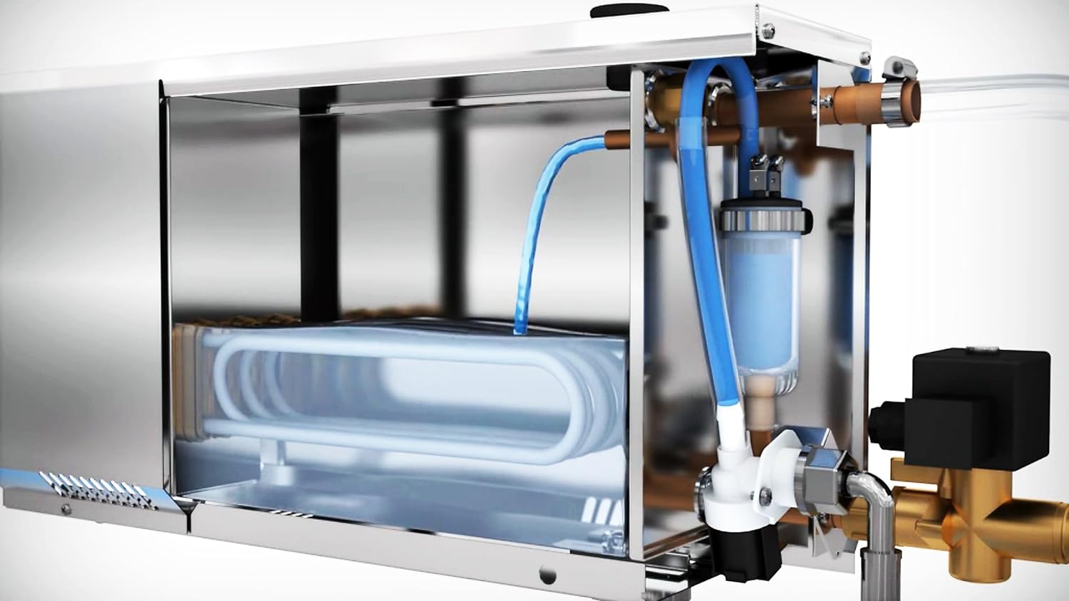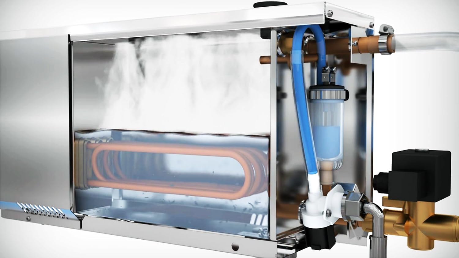 - Das Kit enthält: 1. Dampfdüse 2. Manuelles Auslassventil 3. Rohradapter 18 mm-G1⁄2" 4. Auffangbecher für Ablagerungen 5. Bedienfeld 6. Temperaturfühler