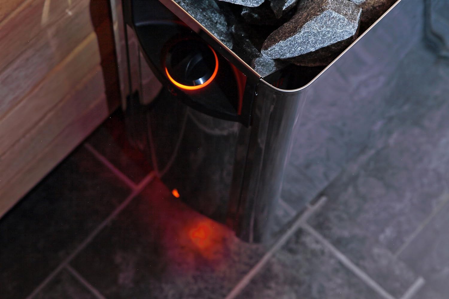 - Der Wall bietet ein einfaches, schlankes Design, das skandinavischem Minimalismus entspricht. Der Ofen passt in kompakte Räume und eignet sich für alle Arten von Saunen, zu deren stilvollem Erscheinungsbild er beiträgt. Die Regelung des Ofenmodells E