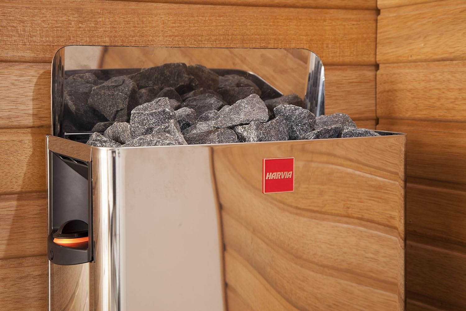 - Der Saunaöfen Harvia The Wall für Saunakabinen von 3 m³ - 12 m³. Die Steinmenge dürfte nicht über 20 kg hinausgehen. Enthält keine Saunasteine