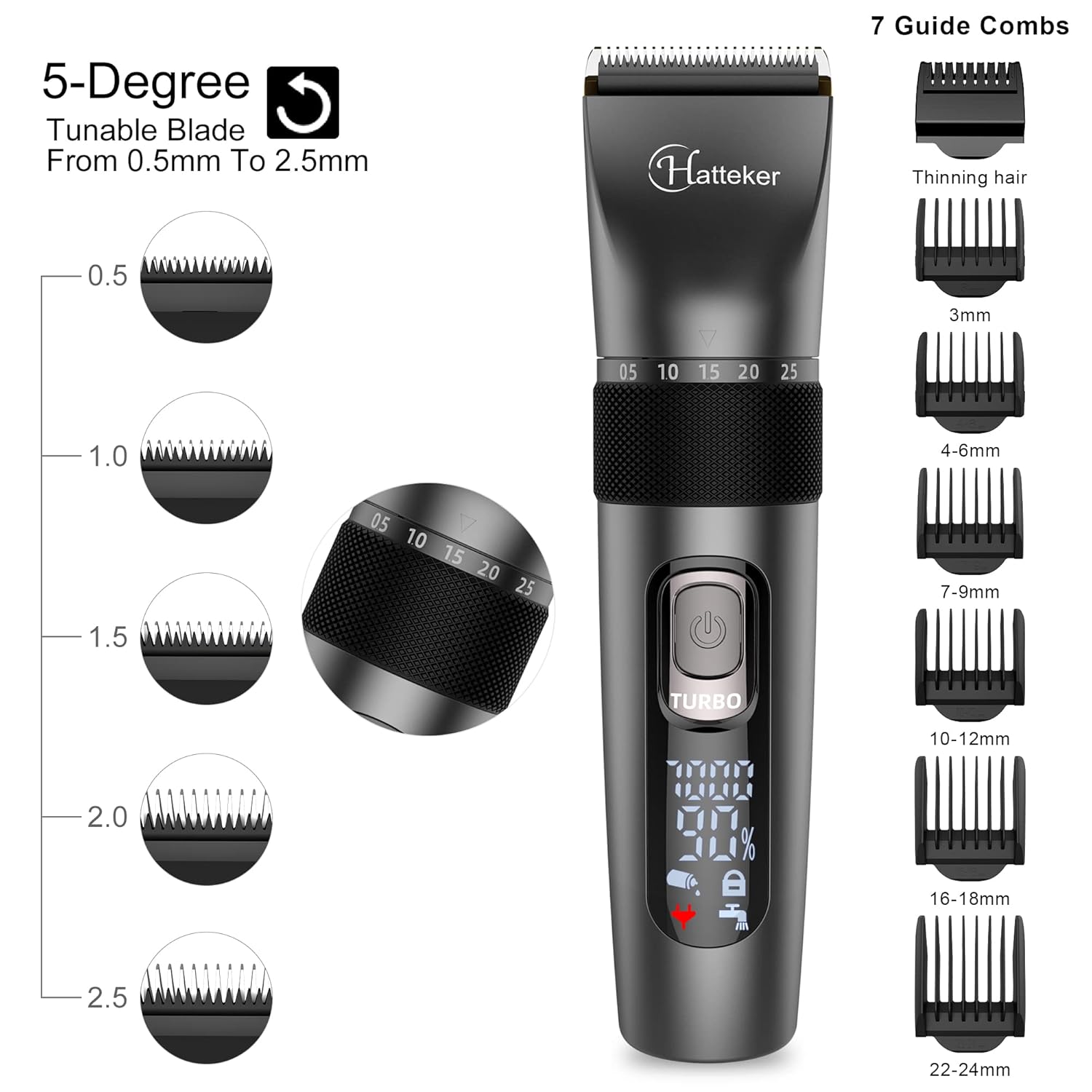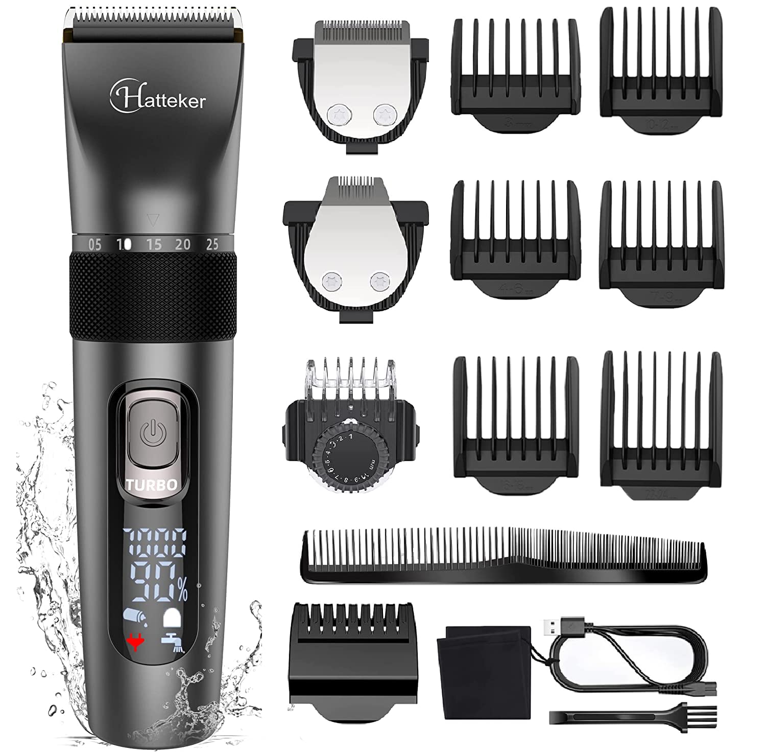 - 【Hatteker 15-teiliges Haarschneide-Set】 Hatteker 3 IN 1 Haarschneide-Set enthält 1 Haupthaarschneidemaschine mit 3 Klingenkopfaufsätzen, darunter 8 Führungskämme, die verschiedene tägliche Bedürfnisse wie Haarschnitt, Körperhaarrasur,