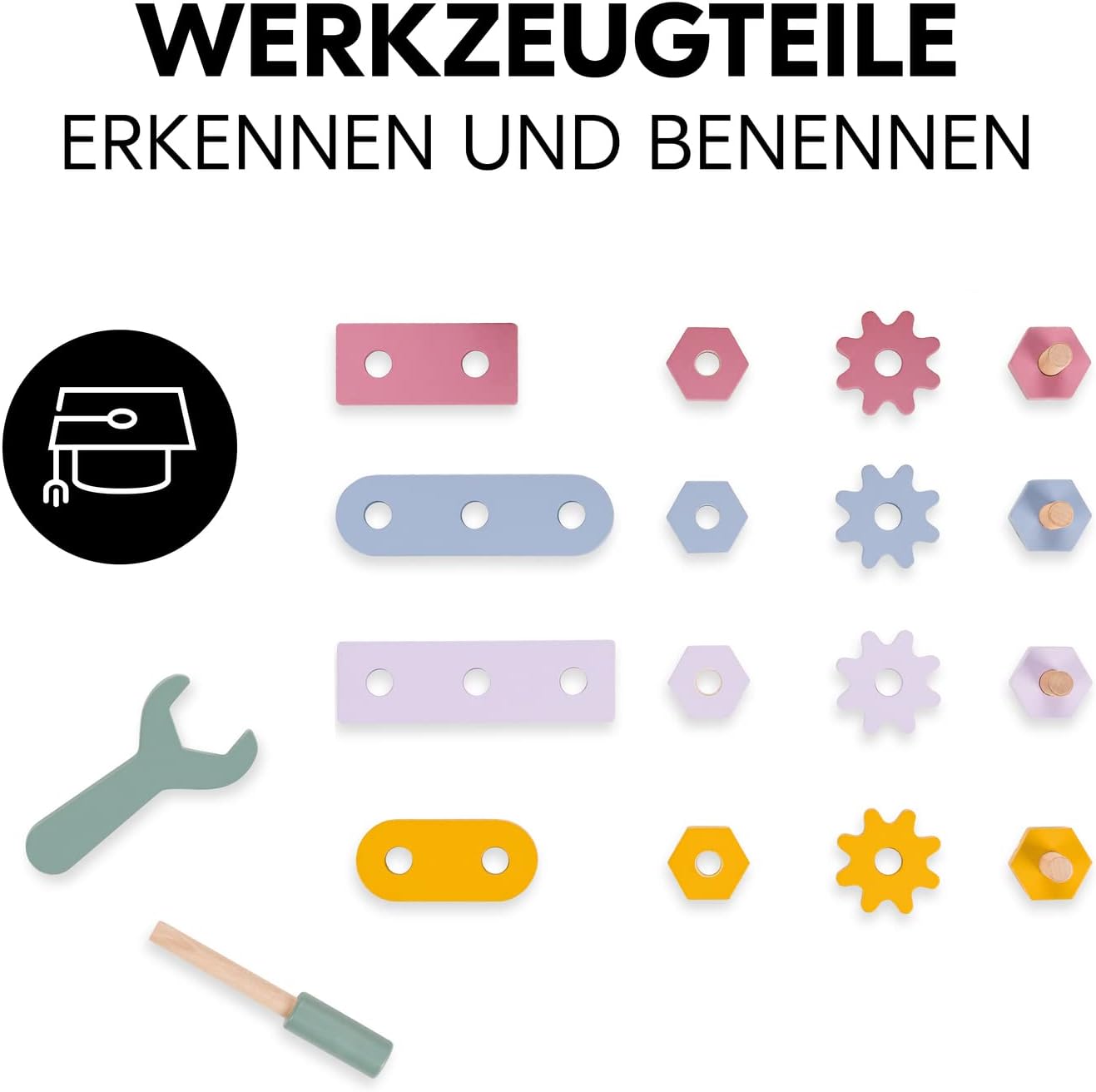 • 🛠️ Fördert Feinmotorik & Koordination: Durch Greifen, Drehen und Stecken der Werkzeuge verbessert dein Kind spielerisch seine Hand-Auge-Koordination und Feinmotorik
