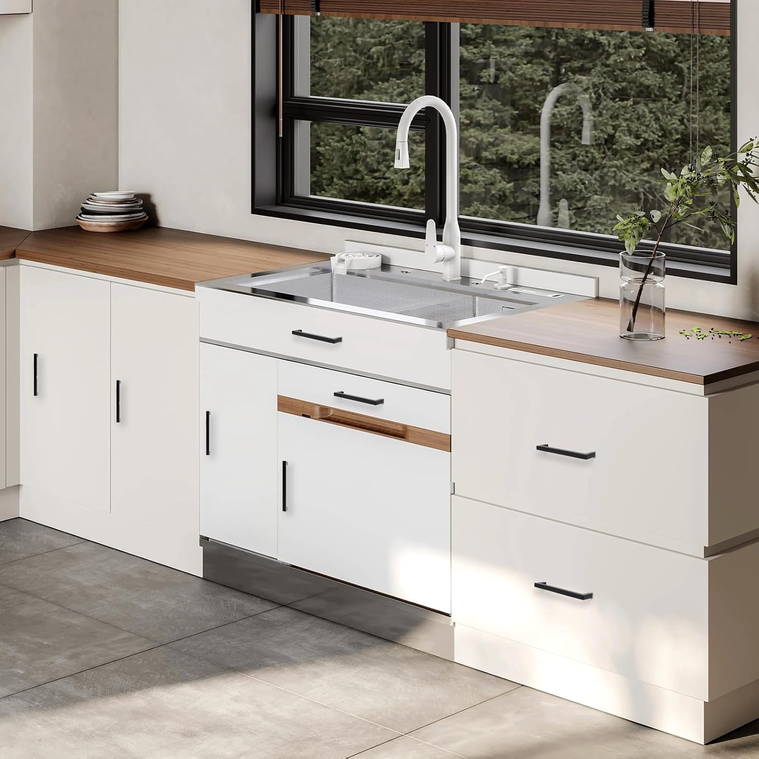 - Material und Design: Hergestellt aus Edelstahl und gebürstetem Nickel, solider Aufbau und angenehmes Griffgefühl. Verringert Fingerabdrücke, vermeidet Rost und Abblättern. Das fein bearbeitete Gewinde fixiert den Griff sicher. Und das bleifreie