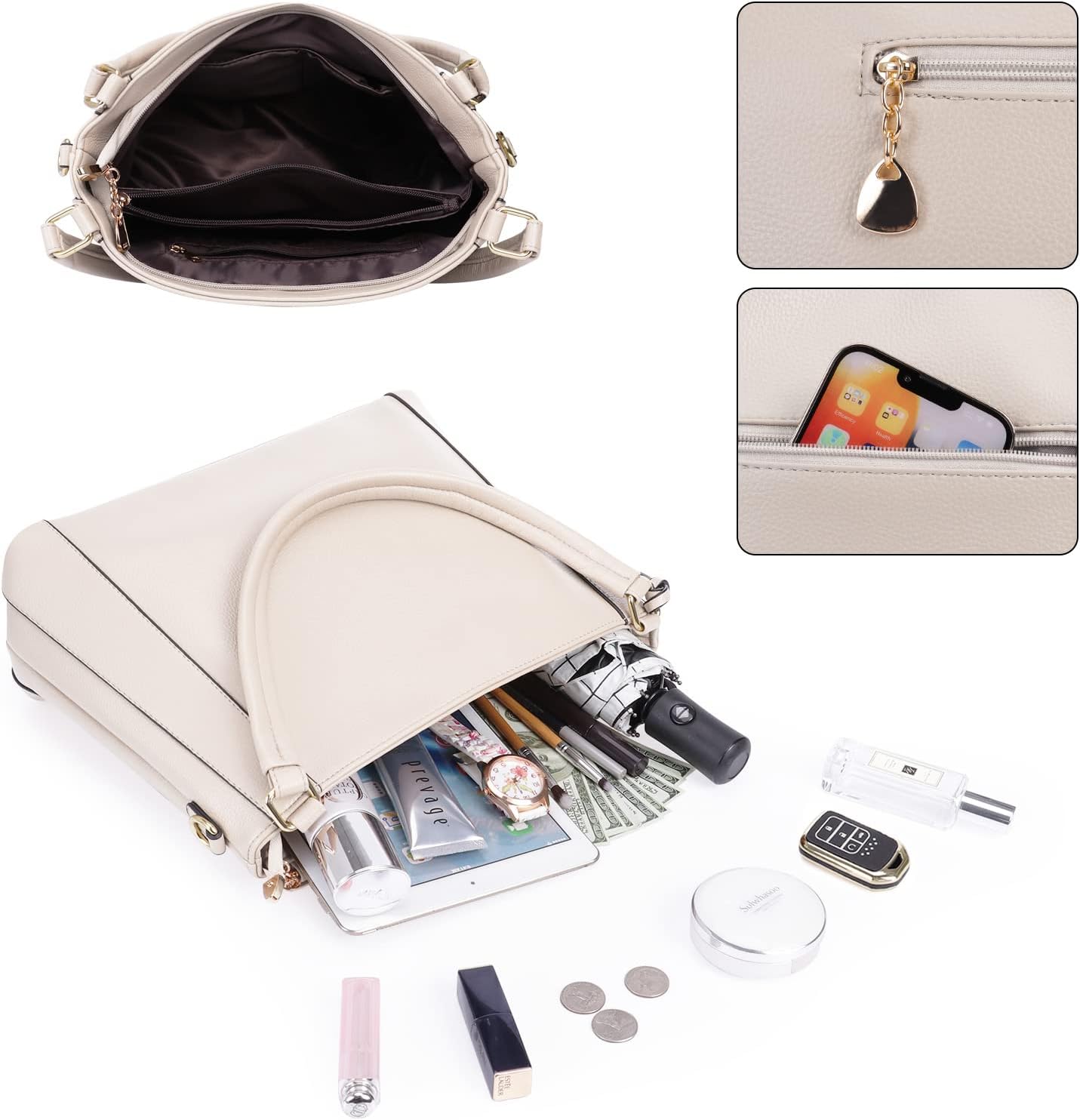 - 【Struktur der Schultertasche】: Entworfen mit 1 Hauptfach mit Reissverschluss (einschliesslich 1 Reissverschlusstasche, 1 kleinen Reissverschlusstasche, 2 Steckfächern), 1 hintere Reissverschlusstasche. Sie hält Ihre Artikel organisiert und