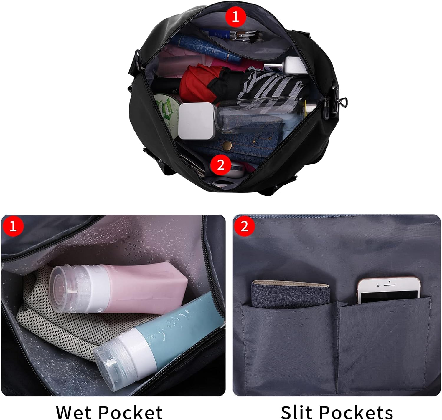 - 【Grosse Kapazität】: Reisetaschengrösse: 47x17,5x37,5cm, Gewicht: 510g. Inklusive 1 Hauptfach, 2 Einschubtaschen, 1 Nassfach, mehrere Taschen können Ihre Gegenstände organisiert halten. Der geräumige Raum der Reisetasche bietet Platz für