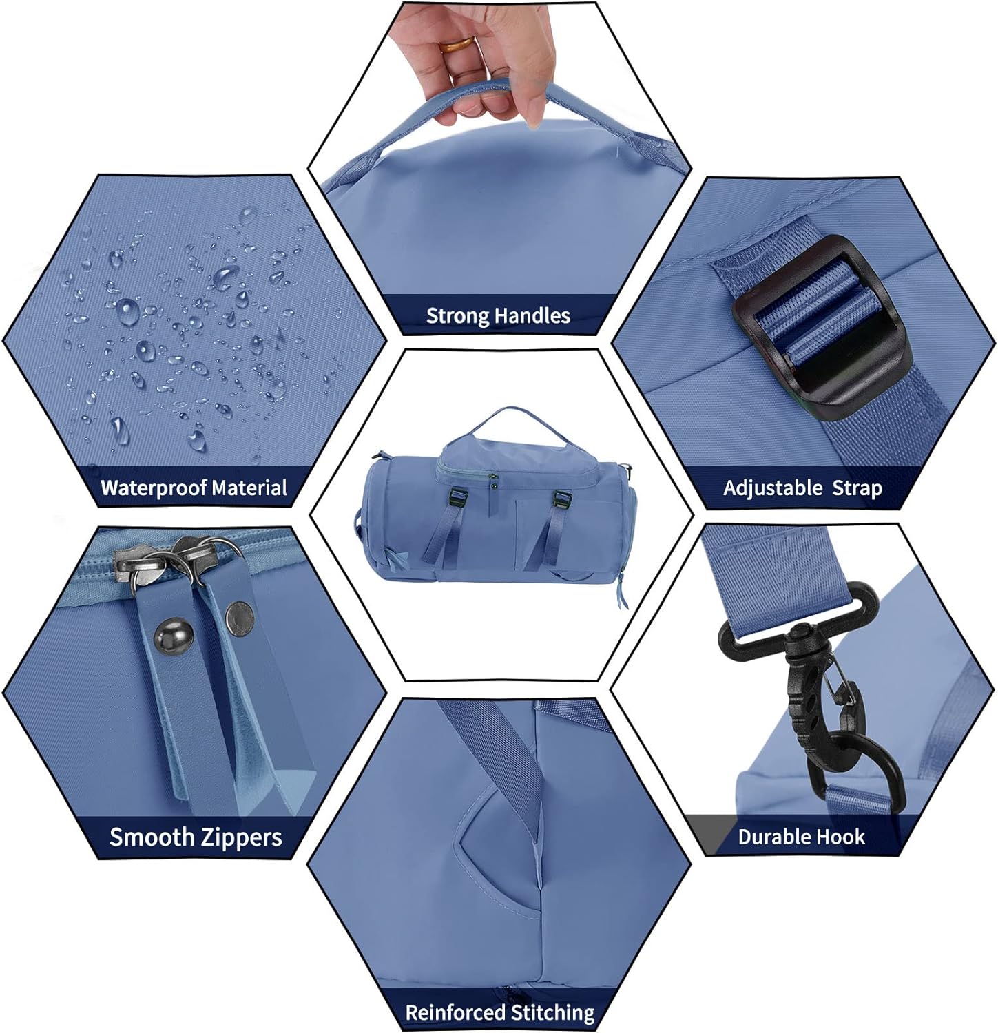 • 【Einzigartiges Strukturdesign】: Die Sporttasche ist mit einem separaten Schuhfach und einer wasserdichten Tasche ausgestattet, in der Sie Schuhe und nasse Gegenstände unabhängig voneinander aufbewahren können. Ausgestattet mit einem verstellbaren