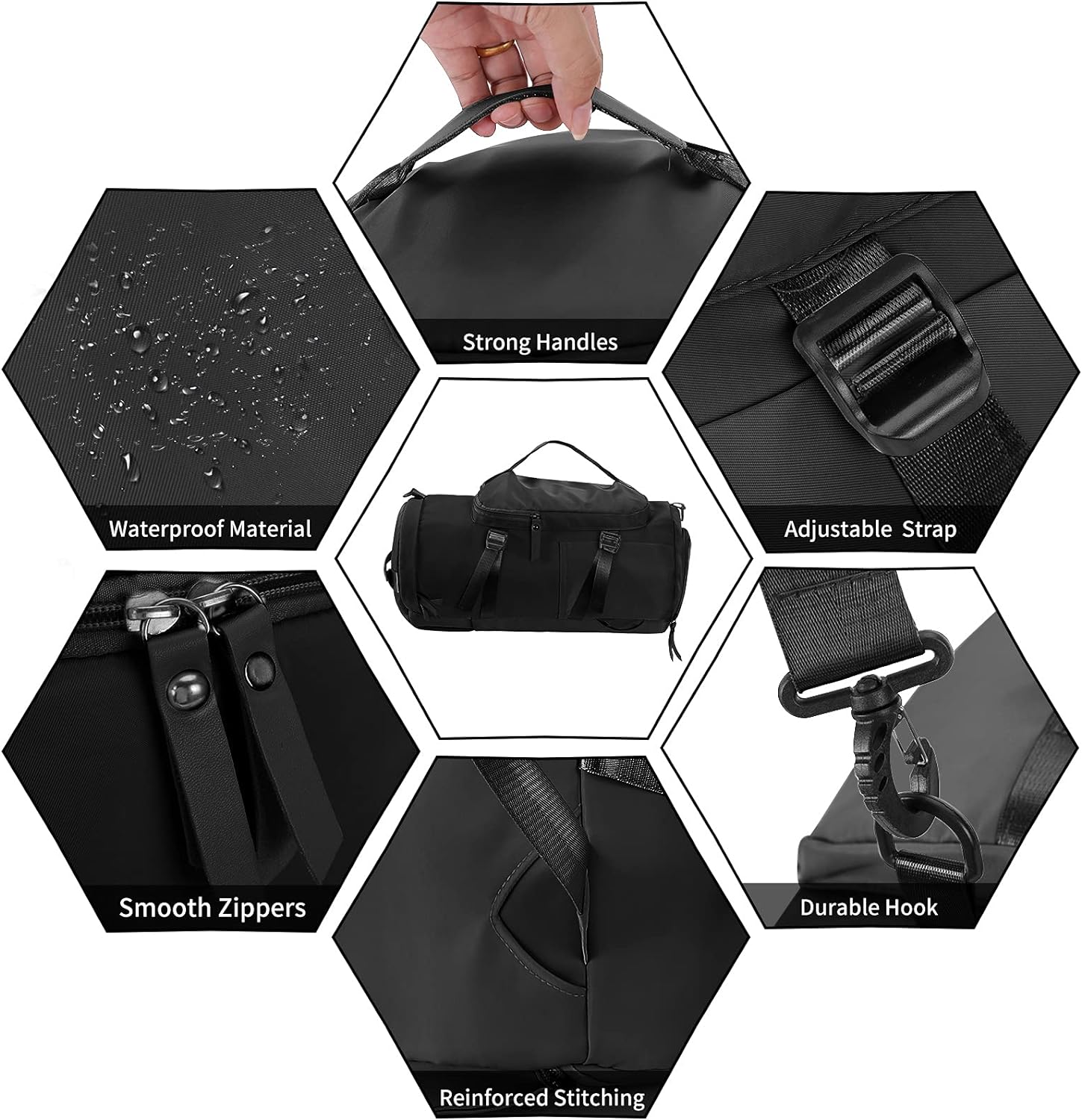 - 【Einzigartiges Strukturdesign】: Die Sporttasche ist mit einem separaten Schuhfach und einer wasserdichten Tasche ausgestattet, in der Sie Schuhe und nasse Gegenstände unabhängig voneinander aufbewahren können. Ausgestattet mit einem verstellbaren