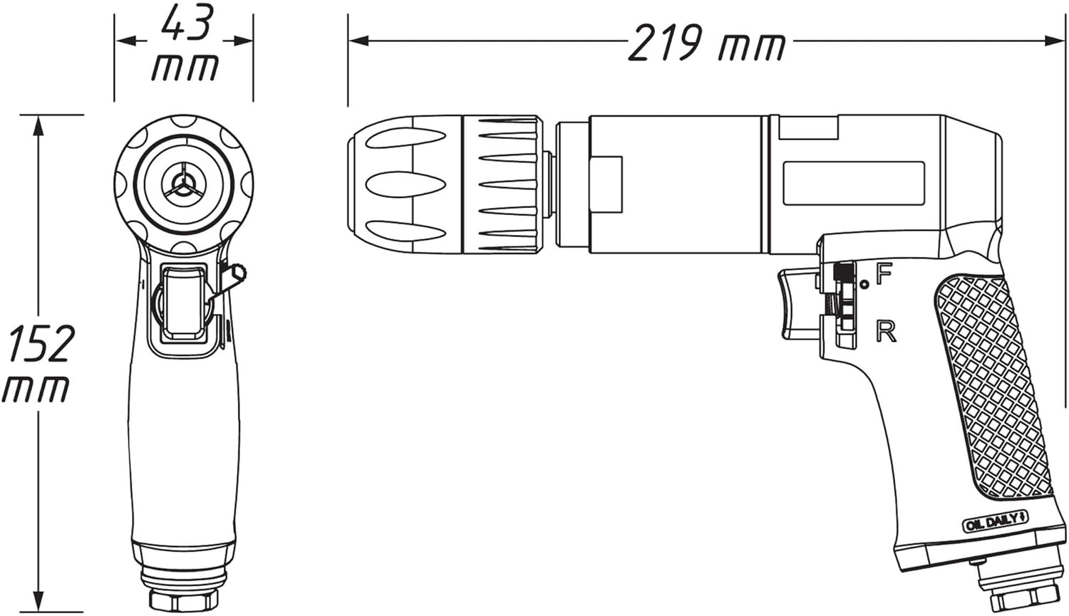 - Masse L x B x H: 219 x 43 x 152 mm