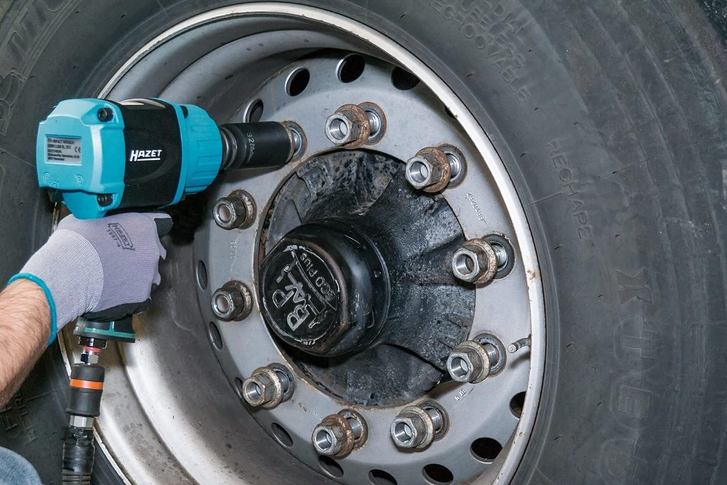- LIEFERUMFANG: 1x HAZET Druckluft-Schlagschrauber | 1x Kupplungsstecker mit Nennweite 7,2 mm für das Luftanschluss-Gewinde | Geräteabmessungen: 199 x 76 x 182 cm | Gewicht: 148 Kilogramm | Lösemoment 461 Nm