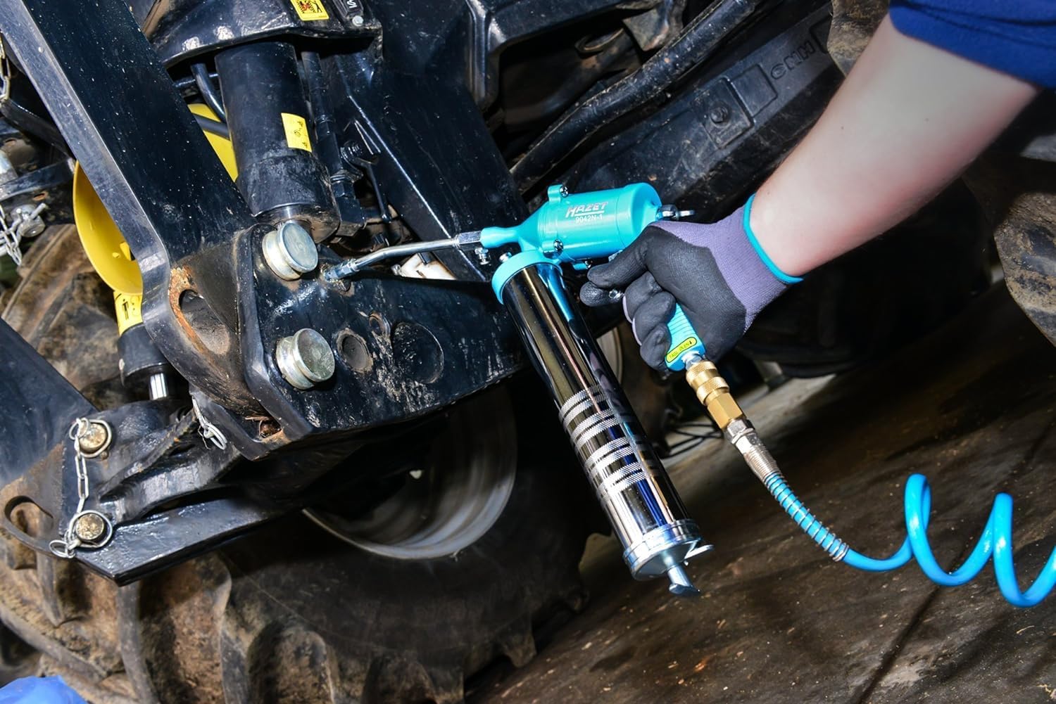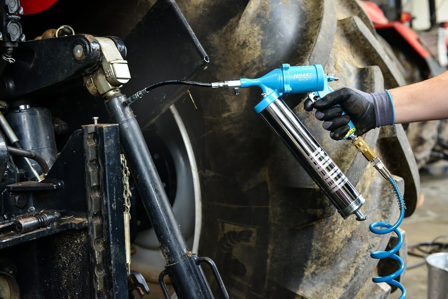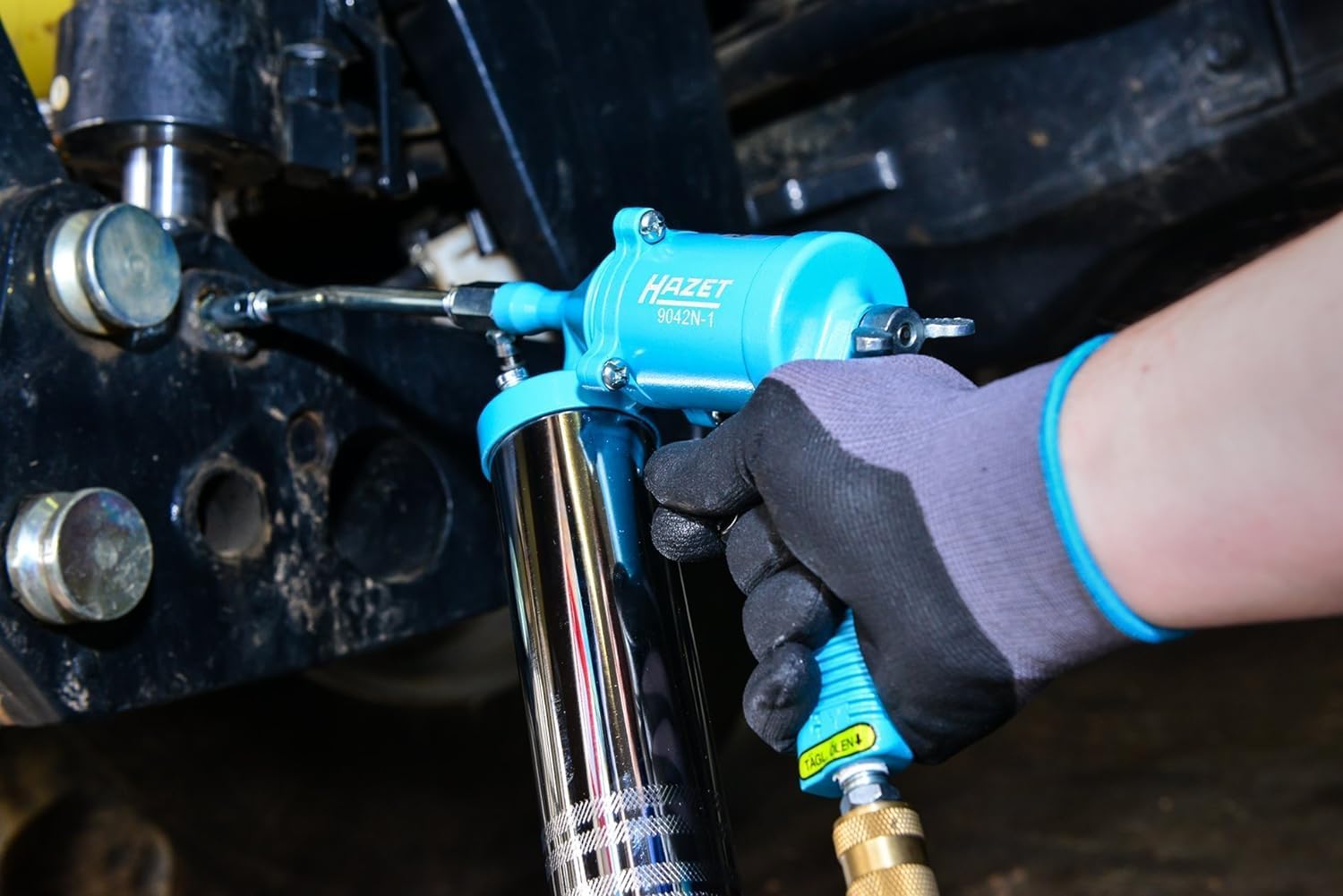 • LIEFERUMFANG: 1x HAZET 9042N-1 Fettpresse | inkl. Kupplungsstecker, Füllmenge: 400 ml, Verdichtung: 40:1, Anschlussgewinde: M 10 x 1 | Geräteabmessungen: 400 x 70 x 190 mm, Nettogewicht: 2,0 kg