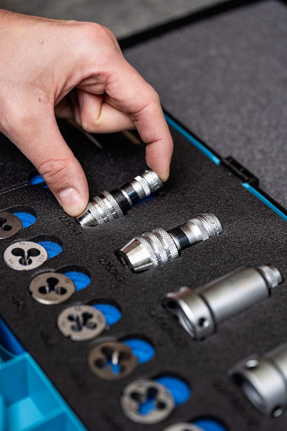 • Zum problemlosen Nachschneiden von Gewinden, auch an schwer zugänglichen Stellen