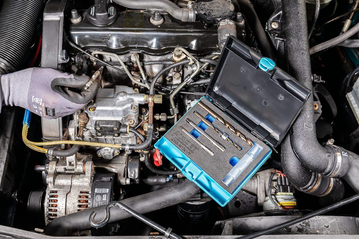 - Ausgerissene Gewinde M10 x 1 werden auf M12 x 1 Gewinde umgearbeitet