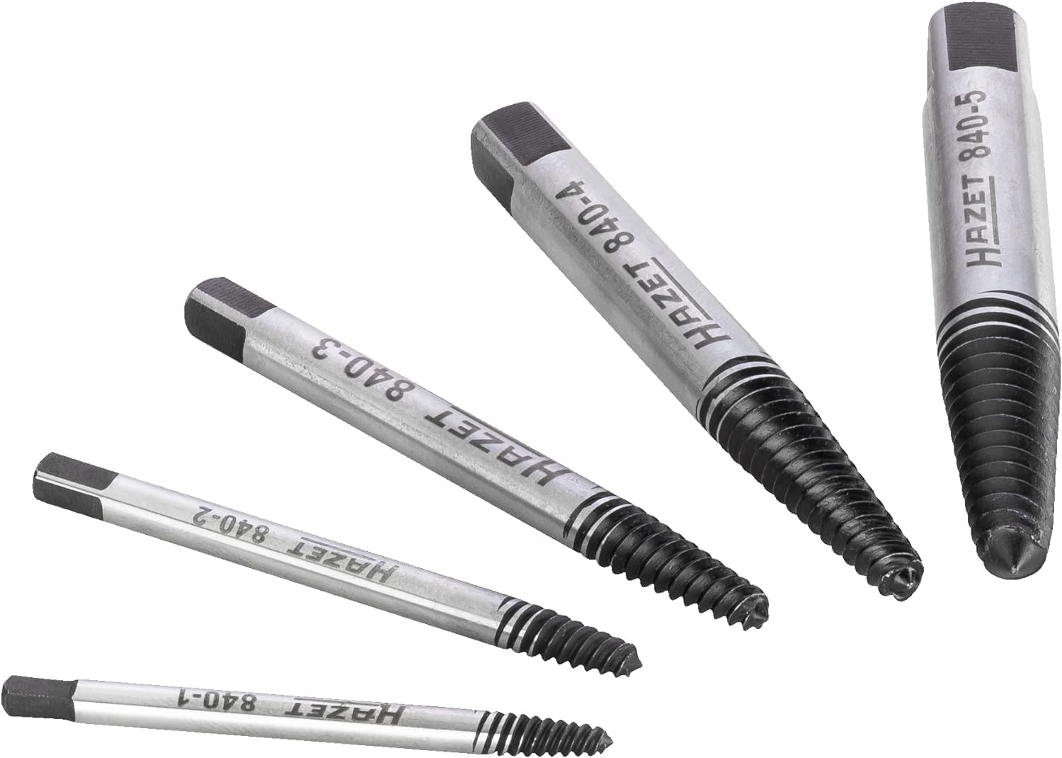 - VIELSEITIG: Damit die Grösse der festsitzenden Schraube keine Rolle spielt, enthält das Set Ausdreher in 5 verschiedenen Grössen. Dank dem HAZET Satz ist immer der richtige Schraubenentferner zur Hand