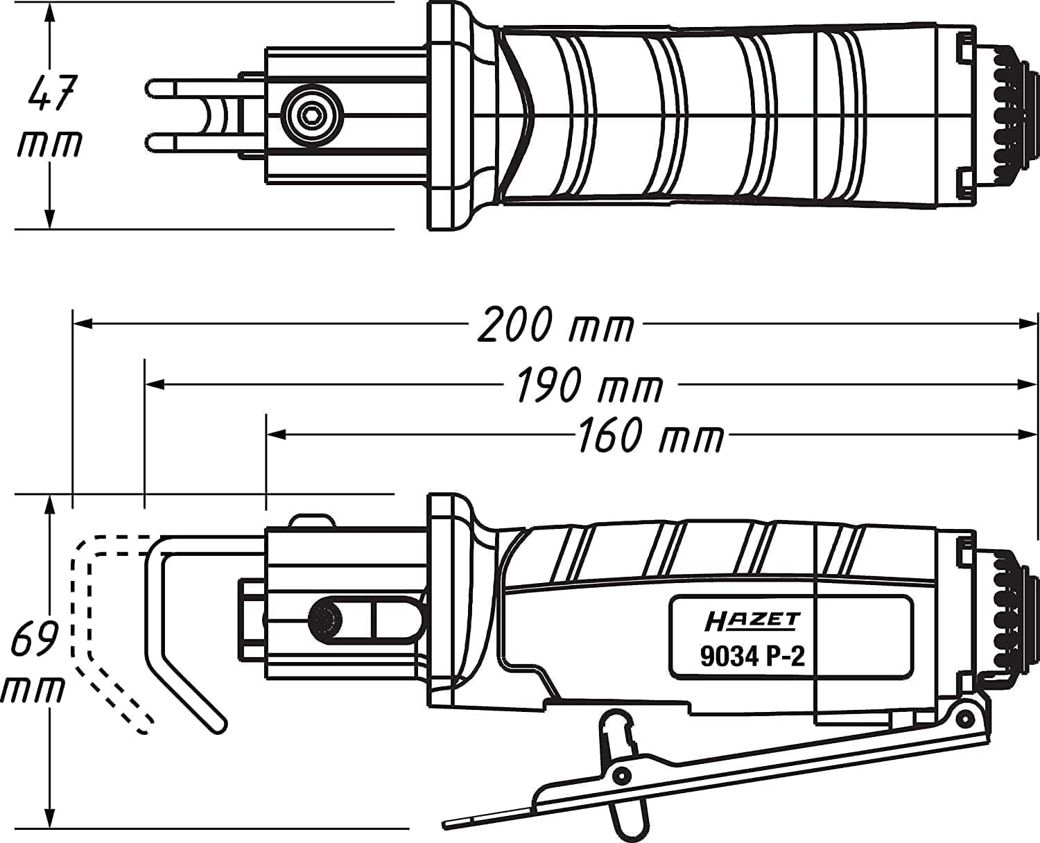 - LIEFERUMFANG: 1x HAZET 9034P-2 Stichsäge | inkl. Kupplungsstecker: Nennweite 7,2 mm, Innengewinde: 12,91 mm, Sägehub: 10 mm, Betriebsdruck: 6,3 Bar | Länge: 160 mm, Nettogewicht: 0,4 kg