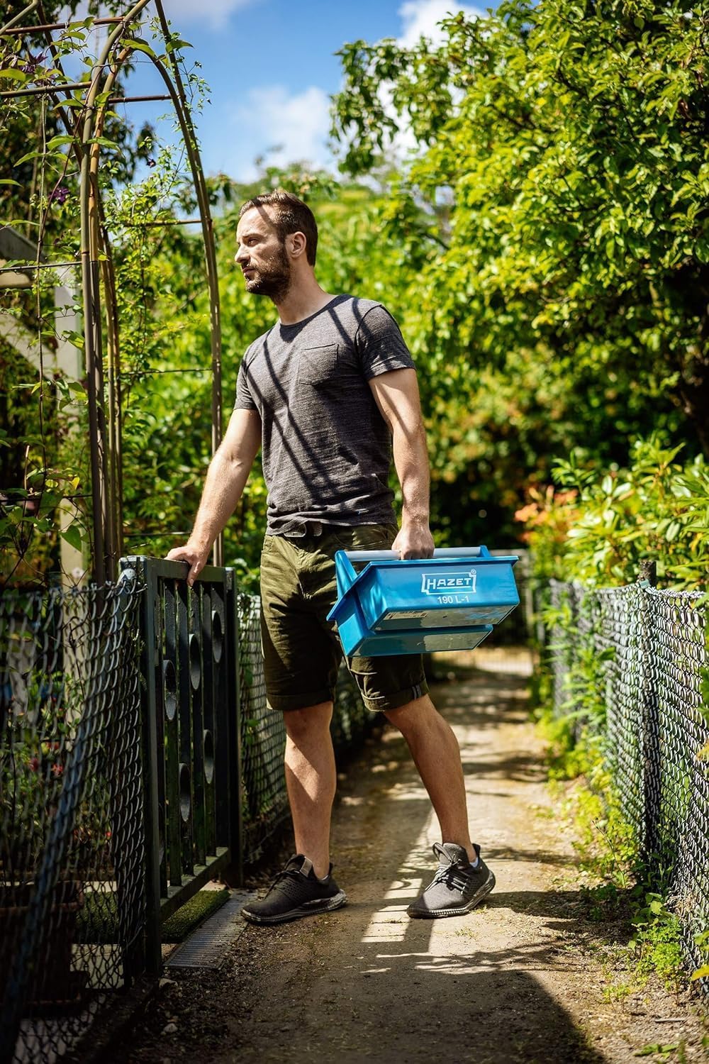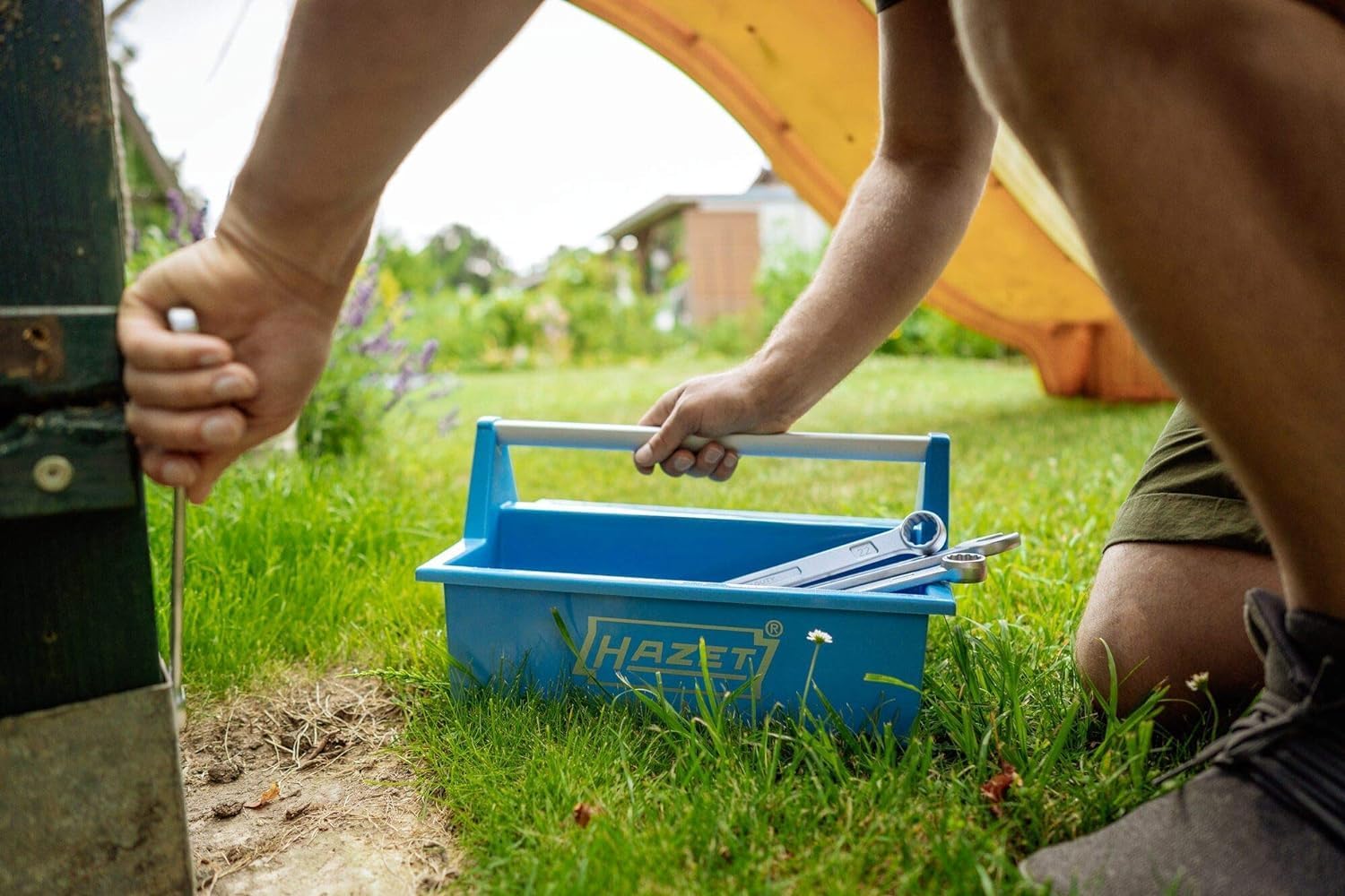 - HOCHWERTIG: Der mobile Werkzeug-Kasten in blauem HAZET Design besteht aus lösemittelbeständigem Kunststoff und ist damit auch für den Transport von Flüssigkeiten und Dosen geeignet