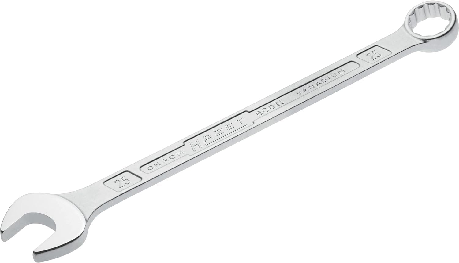 - LIEFERUMFANG: 1x HAZET 600N-25 Ring-Maulschlüssel | Abtrieb: Aussen Doppel-Sechskant Profil, Schlüsselweite: 25 mm, nach DIN 3113 Form A, ISO 3318/7738, Geräteabmessungen: 354 mm, Nettogewicht: 0,4 kg