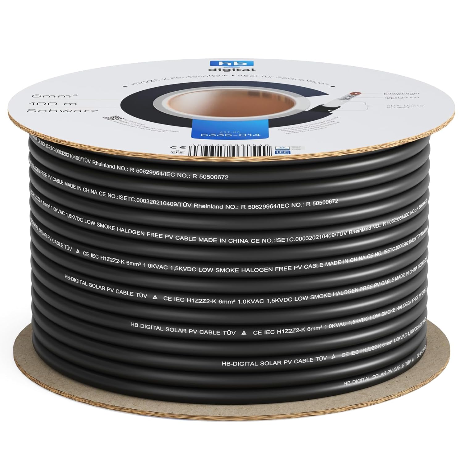hb-digital 100m Solarkabel H1Z2Z2-K TÜV Rheinland geprüft 6mm2 UV-beständig flexibel PV Kabel Reines