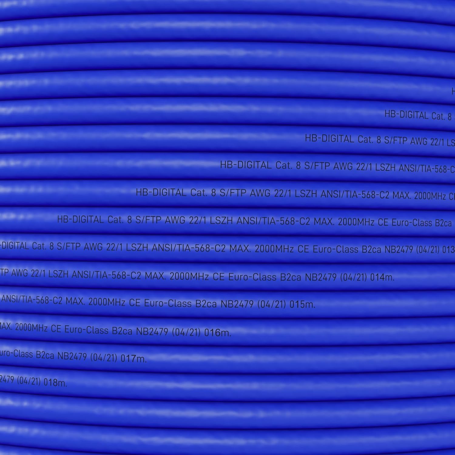 - CAT.8 NETZWERKVERLEGEKABEL von HB-DIGITAL aus REINEM KUPFER mit B2CA s1a d1 a1 Brandschutzklasse Euro CPR ist eine perfekte Lösung für die professionelle Installation und Anschluss von Datenübertragungsstrecken.