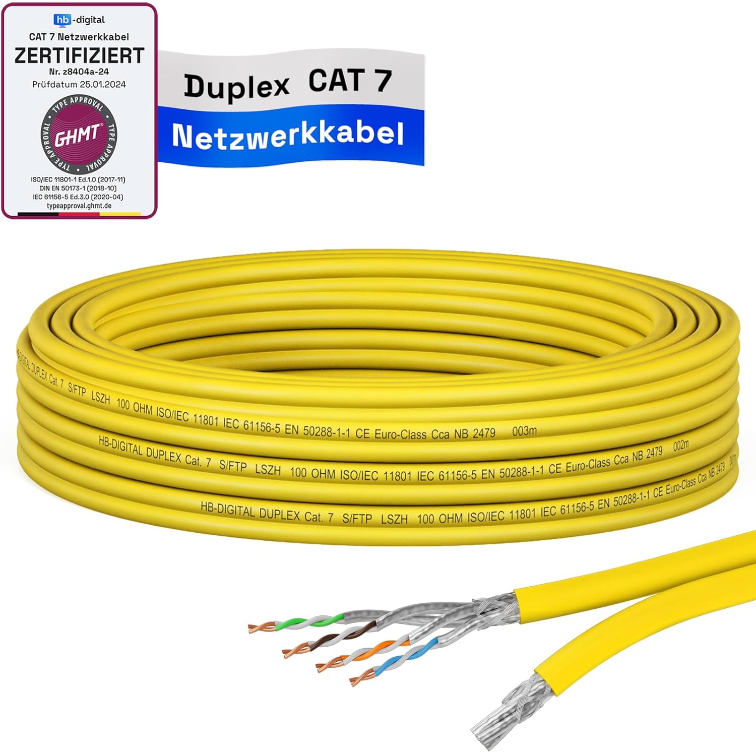 • GHMT geprüftes & zertifiziertes CAT.7 netzwerkverlegekabel von HB-DIGITAL aus REINEM KUPFER mit CCA s1a d1 a1 Brandschutzklasse Euro CPR ist eine perfekte Lösung für die professionelle Installation und Anschluss von Datenübertragungsstrecken.