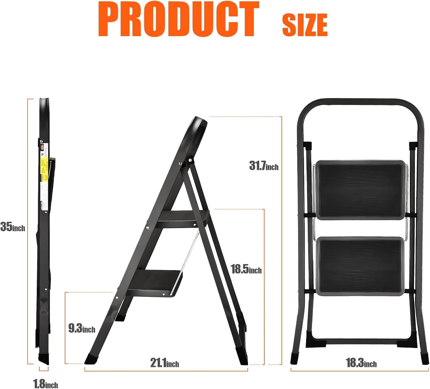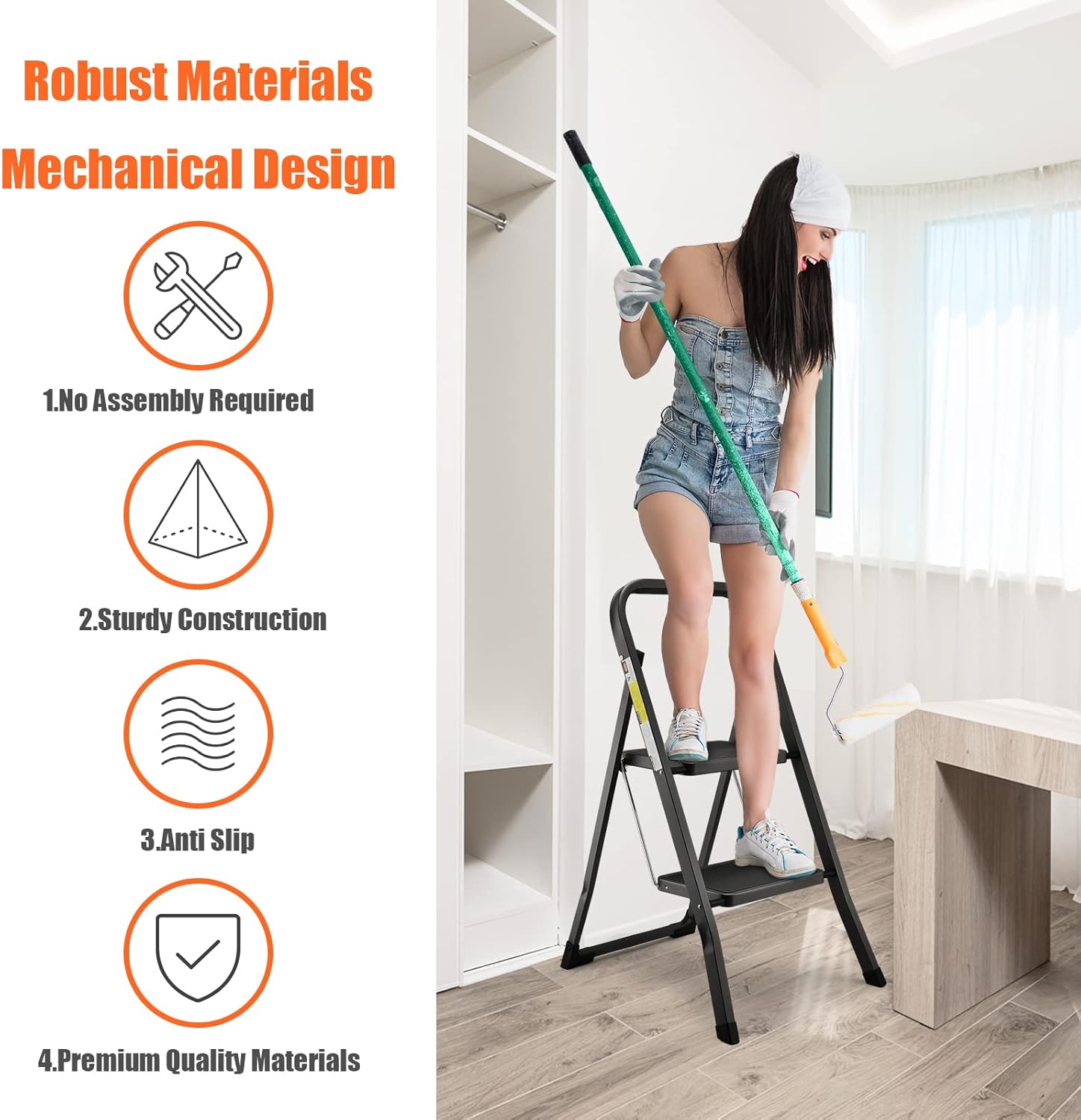 • 【Multipurpose Use】Es bietet zusätzliche Höhe für die Reinigung, das Wechseln der Glühbirne oder das Erreichen, um etwas zu holen. Die oberste Stufe hebt Sie 47cm vom Boden. Die 2-stufige Leiter macht es einfacher, die Arbeit zu erledigen! Sie