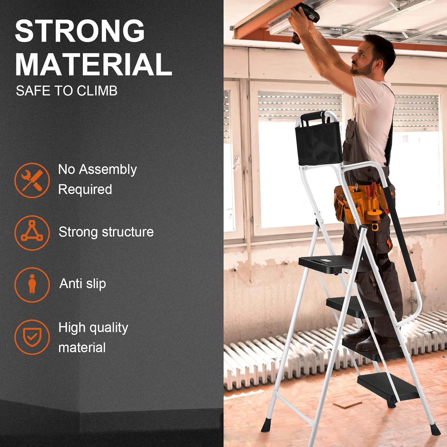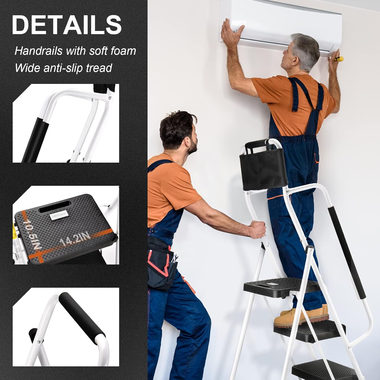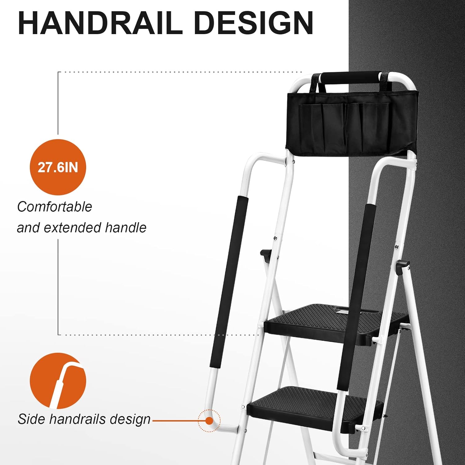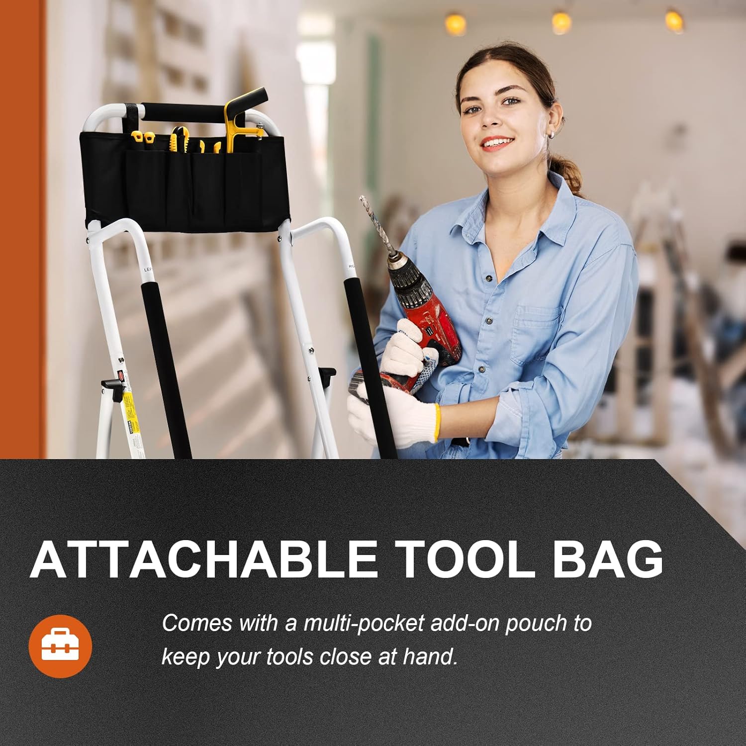 HBTower Leiter 4 Stufen, Trittleiter mit Handläufen, klappbarer Tritthocker mit ansteckbarer Werkzeu