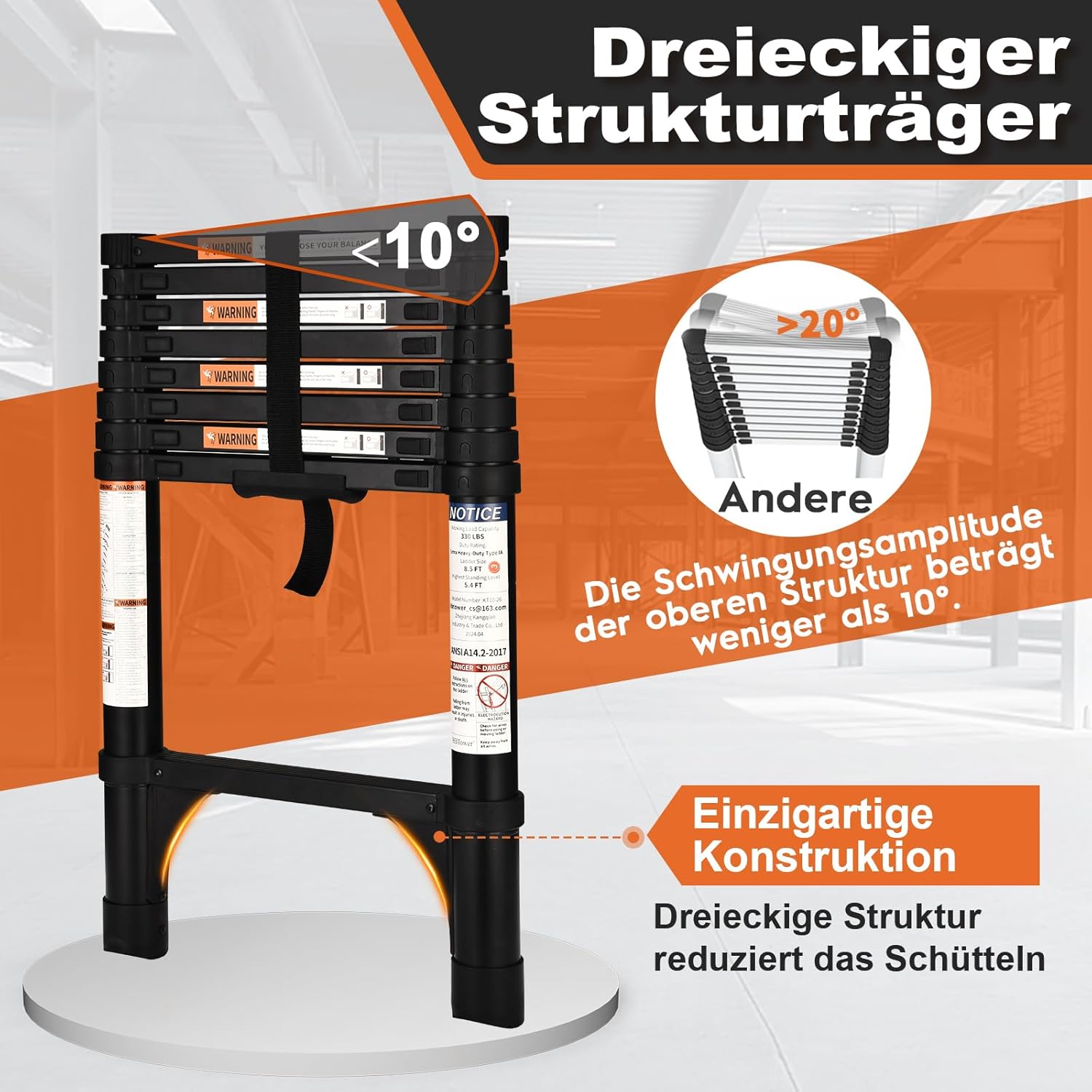 • Sicherheit zuerst!: Diese Leiter Ausziehbar ist mit einem Sicherheitsverriegelungsmechanismus und rutschfesten Fusspolstern ausgestattet, um Stabilität und Sicherheit während der Benutzung zu gewährleisten. Der einfache Verriegelungsmechanismus