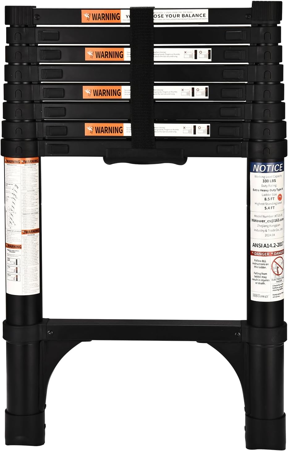 HBTower Teleskopleiter 2,6m mit rutschfesten Füssen,Leichte Ausziehleiter, Leiter Ausziehbar, klappb