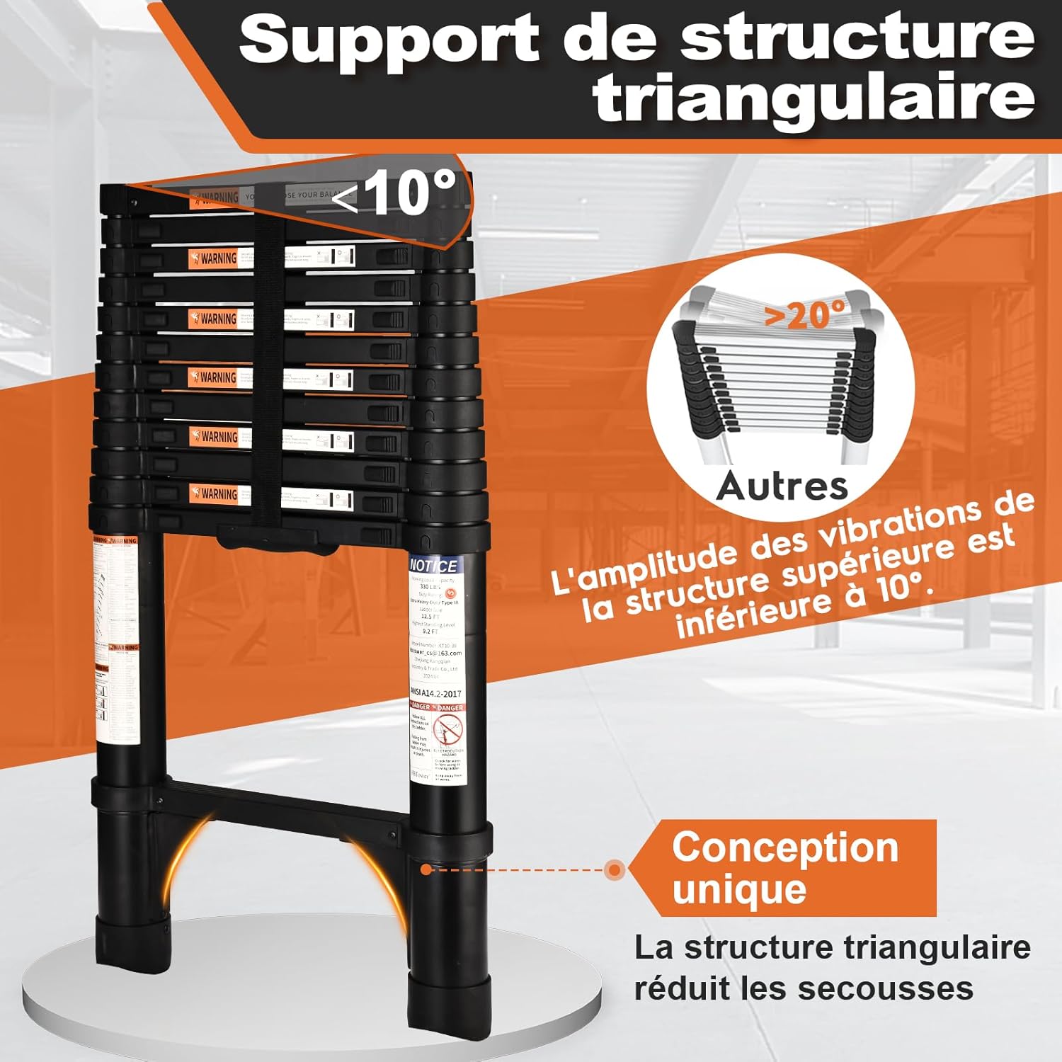 - Hochfeste Aluminiumlegierung: Die Teleskopleiter besteht aus einer 6063-hochfesten, hochharten Aluminiumlegierung, die eine ebenso hervorragende Tragfähigkeit wie legierter Stahl bietet. Sie ist verschleissfest, korrosionsbeständig, rostfrei und