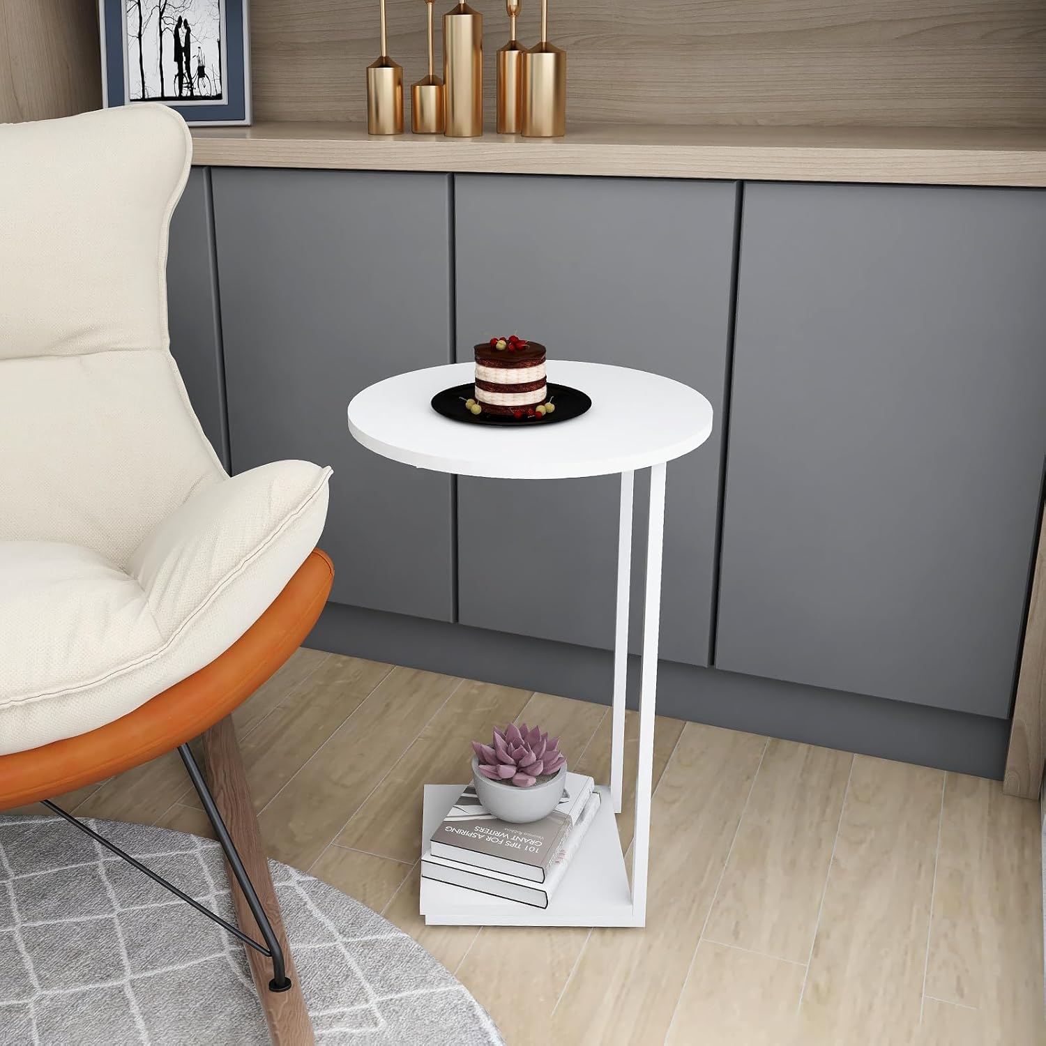 HDANI C-förmiger Beistelltisch 2er Set,Runder Couchtisch Sofatisch Nachttisch Nachttisch Laptoptisch
