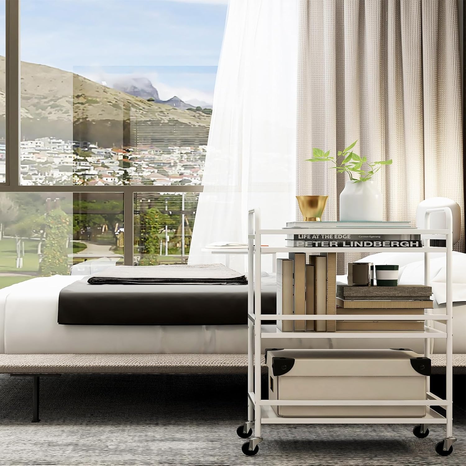 - [EINFACH ZU BEWEGEN] Der mobile Aufbewahrungswagen verfügt über 4 Gummiräder, die sich um 360 Grad drehen lassen und für Flexibilität, reibungslose Bewegung und superleise sorgen. Rollen Sie ihn einfach und bequem überall hin. Mit dem Griff können