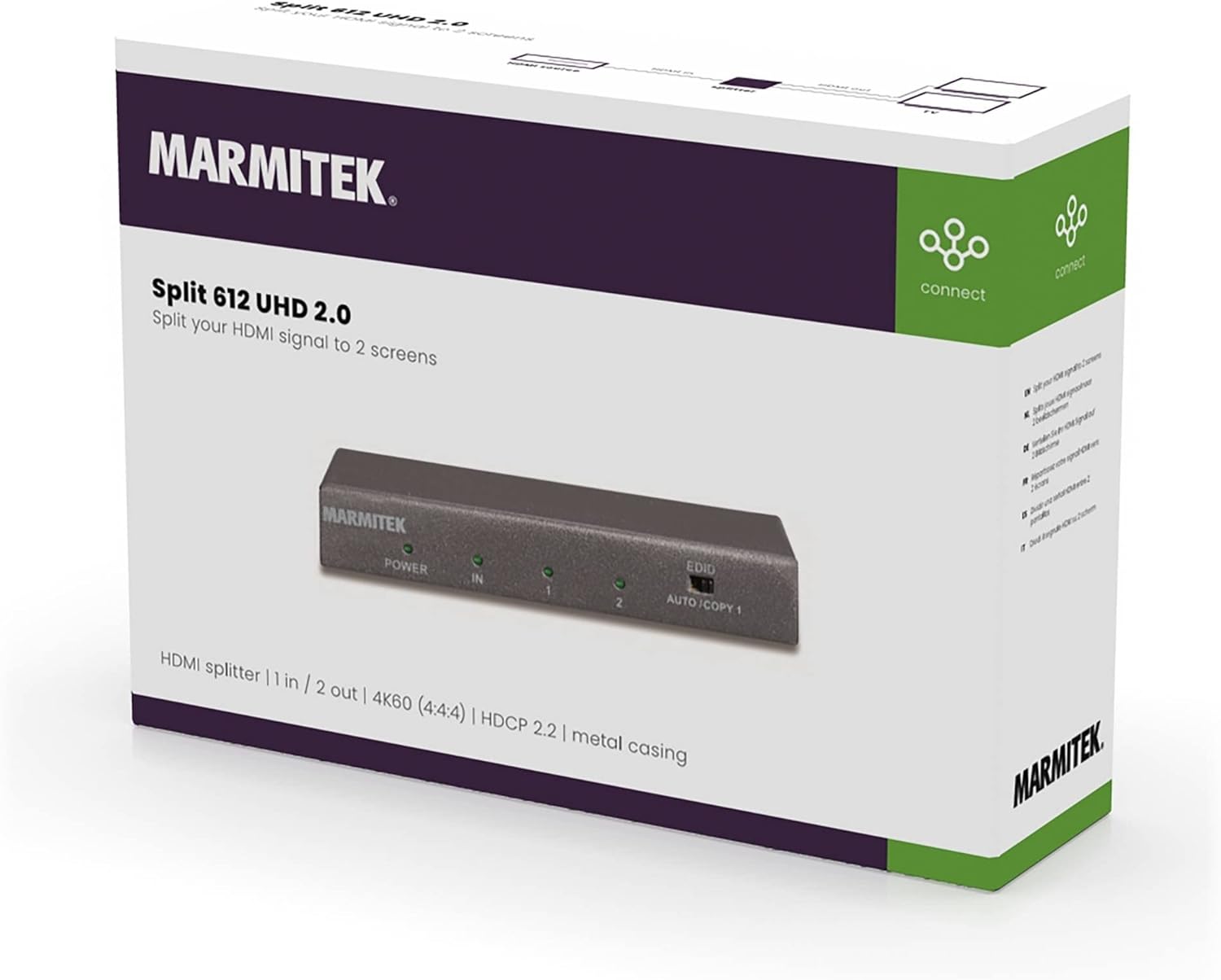 HDMI Splitter 4K60 - Marmitek Split 612 UHD 2.0 - 1 Ein / 2 Aus - Ultra HD - HDMI Verteiler - 3840 x