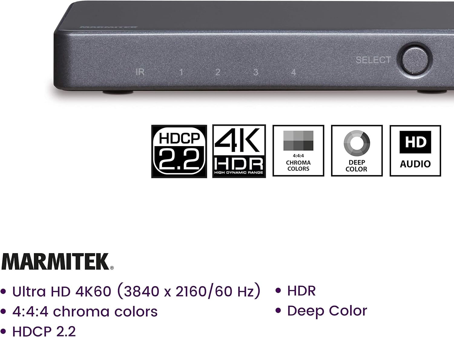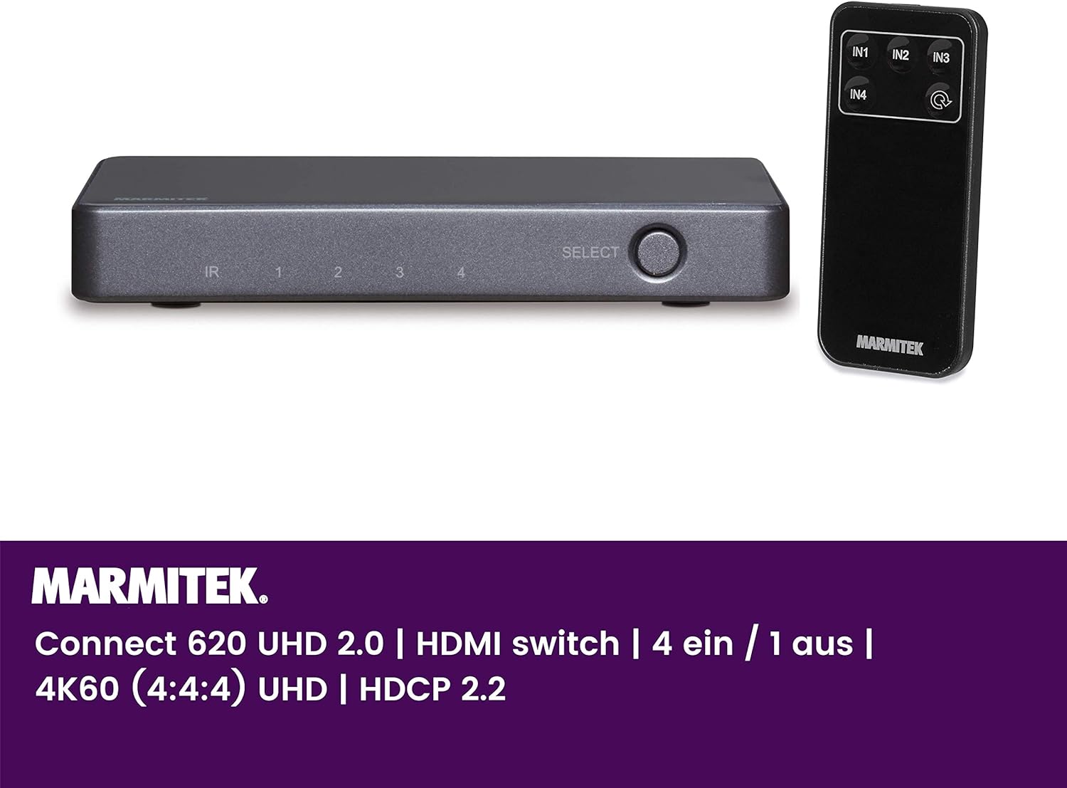 - AUTOMATISCH SCHALTEN ZWISCHEN QUELLEN - Die Connect 620 UHD 2.0 schaltet automatisch zwischen den angeschlossenen HDMI-Quellen um. Darüber hinaus können Sie mit der mitgelieferten Fernbedienung, die Sie auch verwenden können, wenn die Connect 310 UHD
