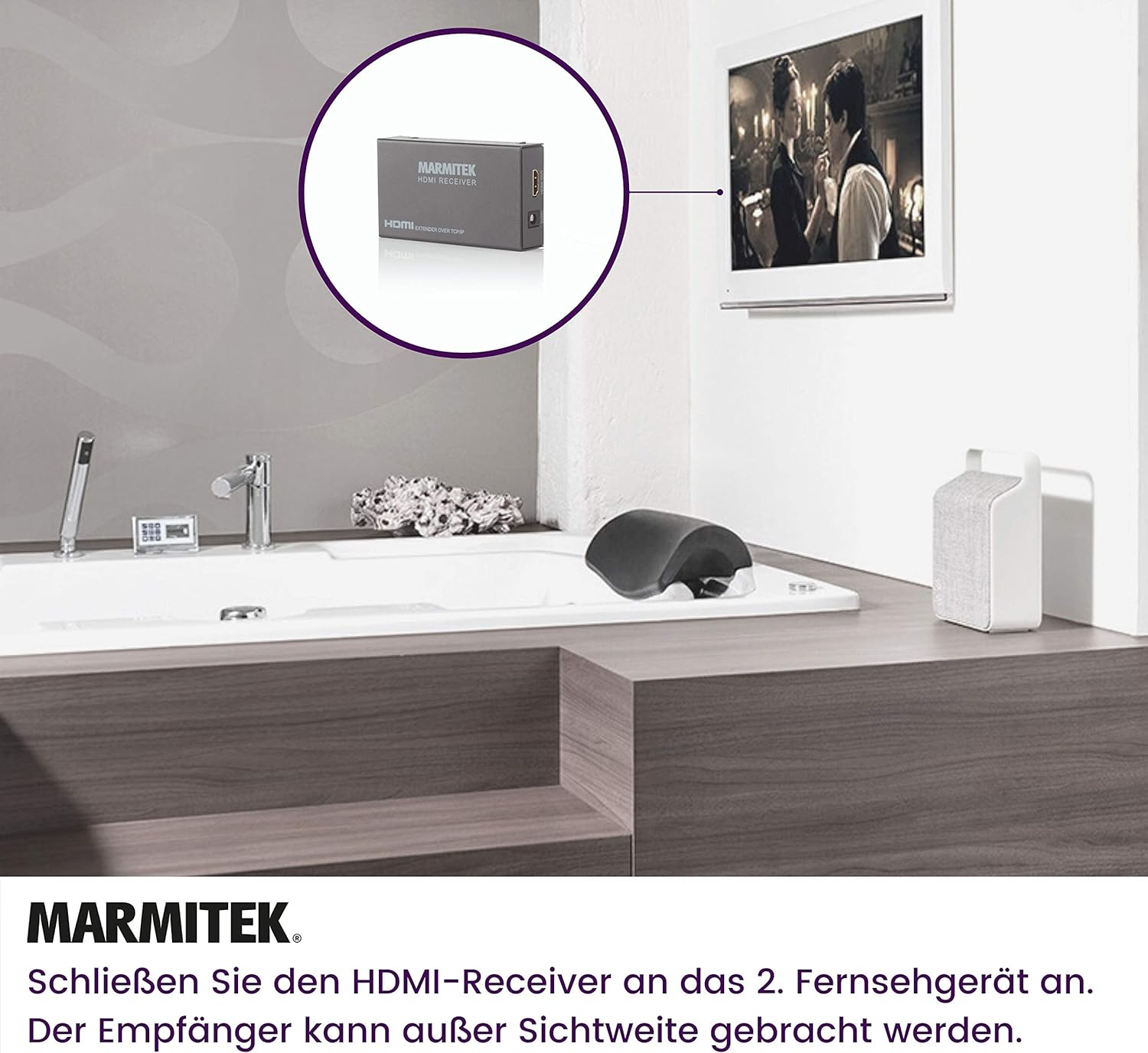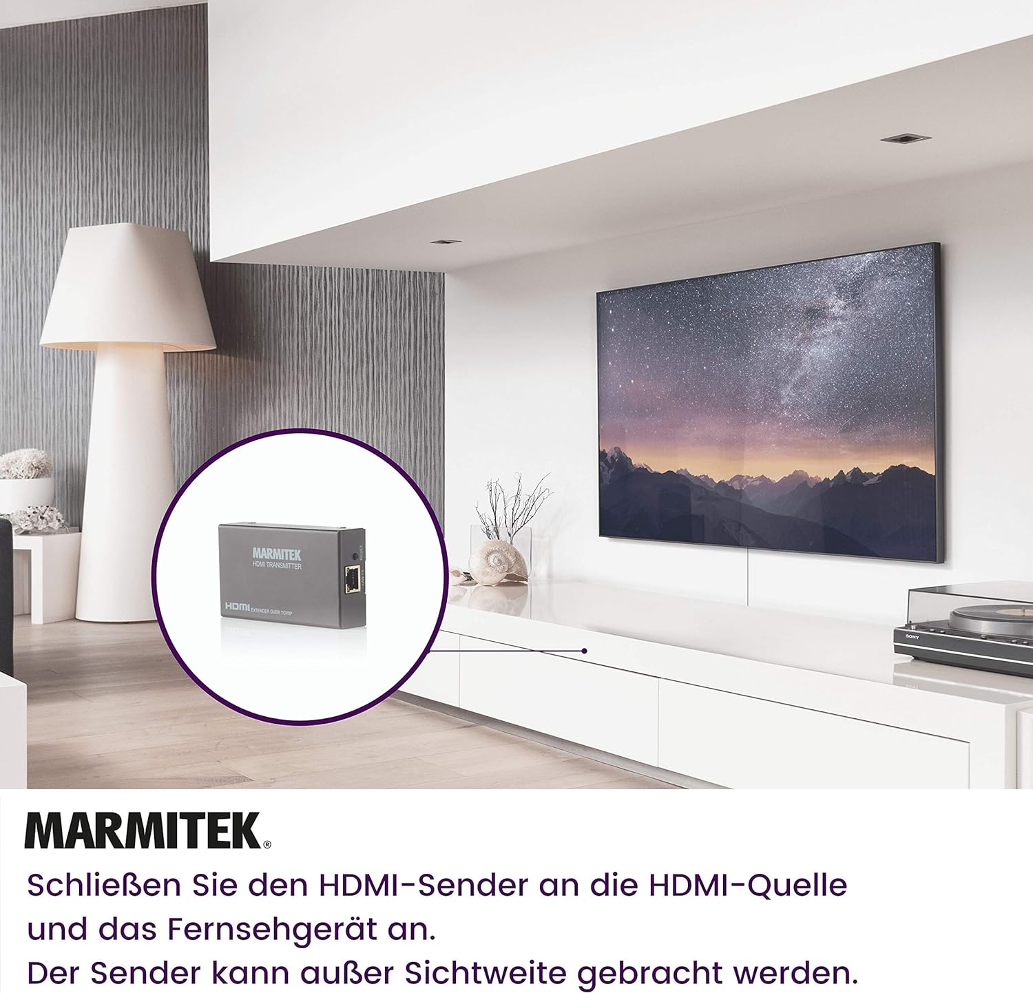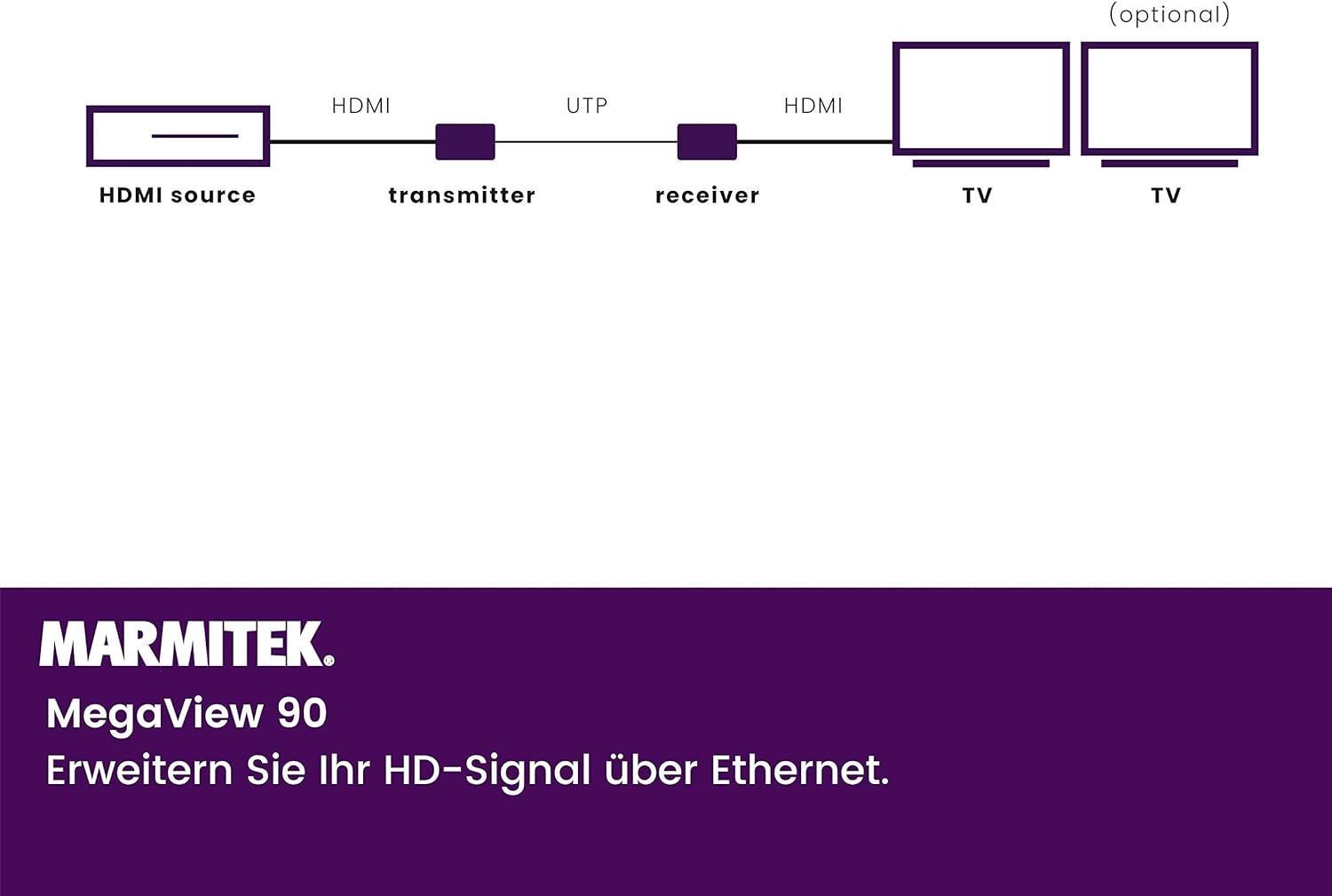 - MEHRFACHE EMPFÄNGER - An den MegaView 90 können mehrere Empfänger angeschlossen werden, sodass Sie das HDMI-Signal in mehreren Räumen empfangen können.