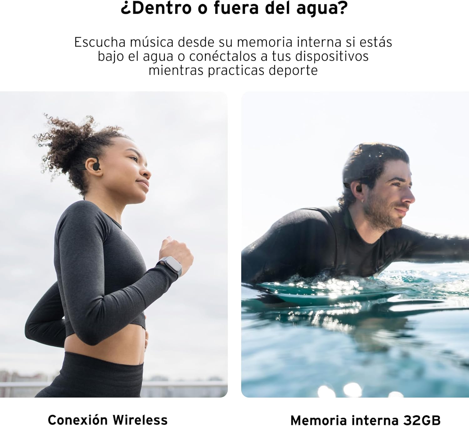 - Musik ohne Störungen während des Trainings: Geniessen Sie Ihr Training mit vollem Komfort dank der Knochenleitungstechnologie, mit der Sie Musik hören können, ohne die Unannehmlichkeiten von In-Ear-Kopfhörern.